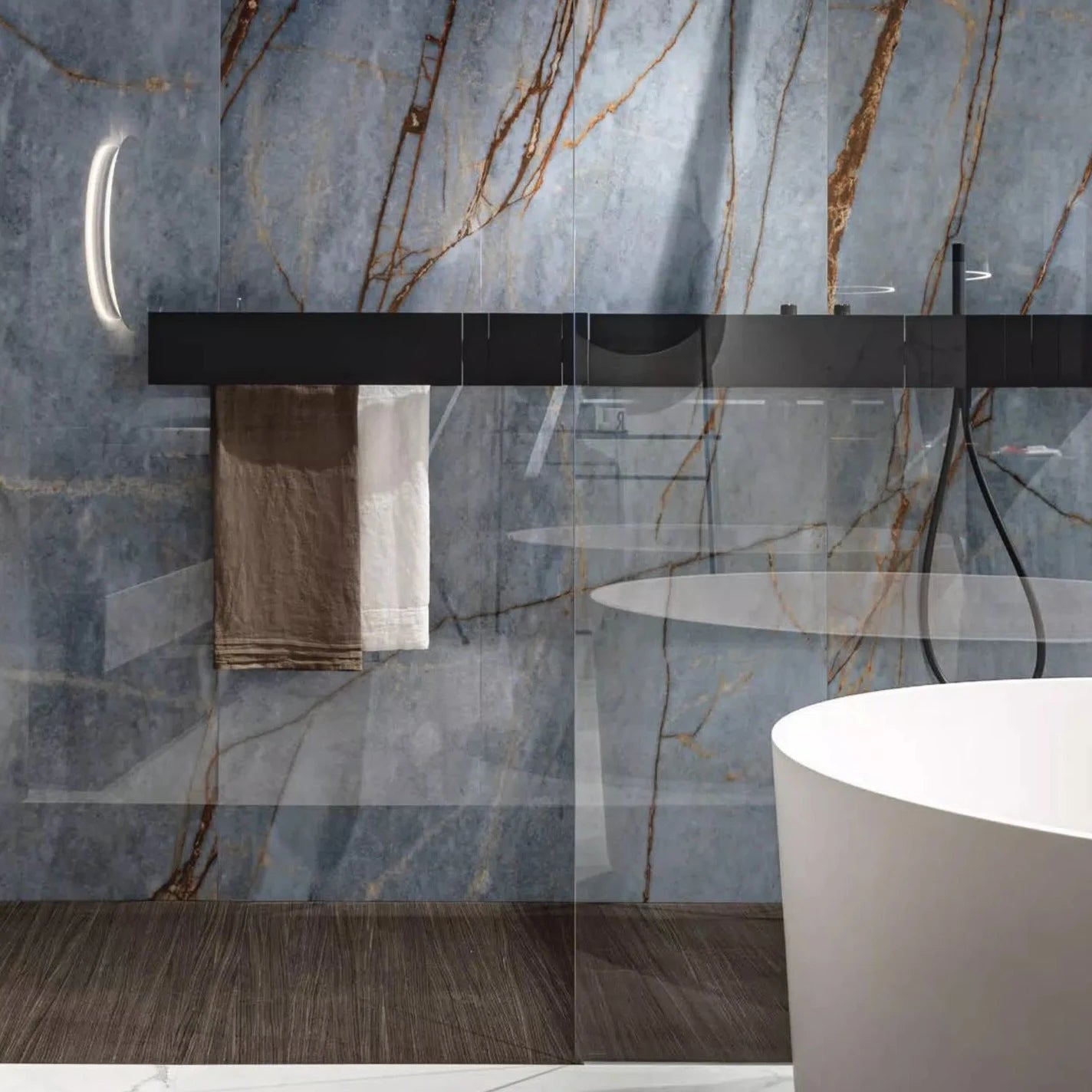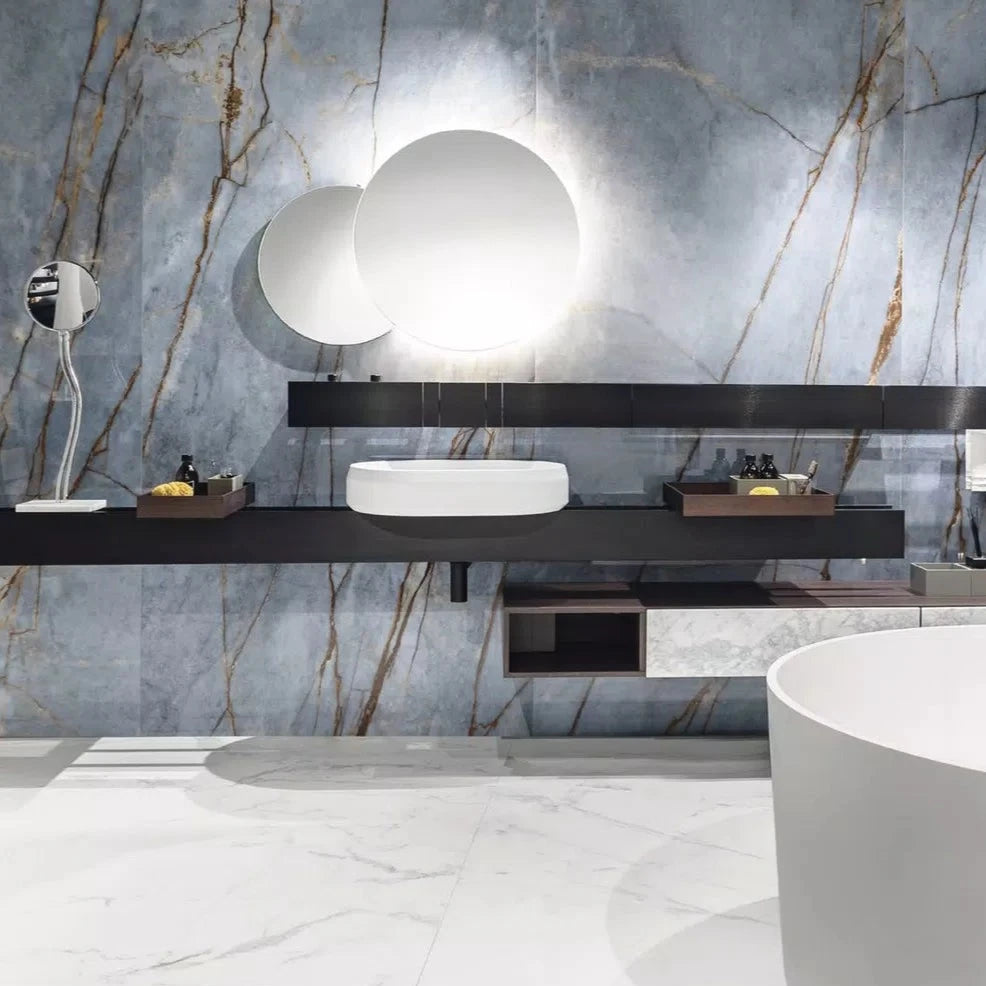 تصميم عصري وخالد: يوفر الجمع بين تصميم البلاطة الكبيرة وتأثير الرخام الأزرق تفسيرًا عصريًا للأناقة الكلاسيكية، ويجمع بين الجماليات الخالدة والأسلوب المعاصر.