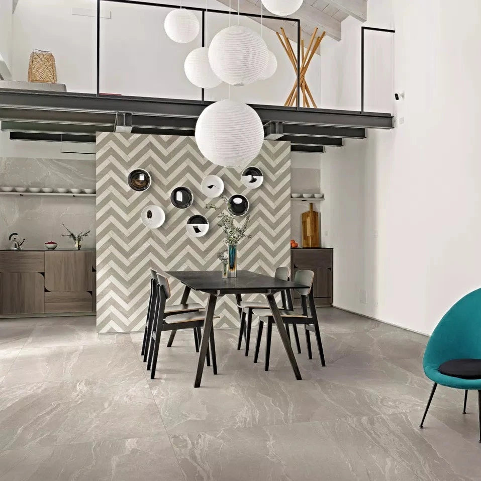 بلاط بورسلين كبير الحجم مع تأثير الرخام: انغمس في مساحتك بالفخامة مع هذا البلاط كبير الحجم الذي يحاكي جمال الرخام الخالد.
