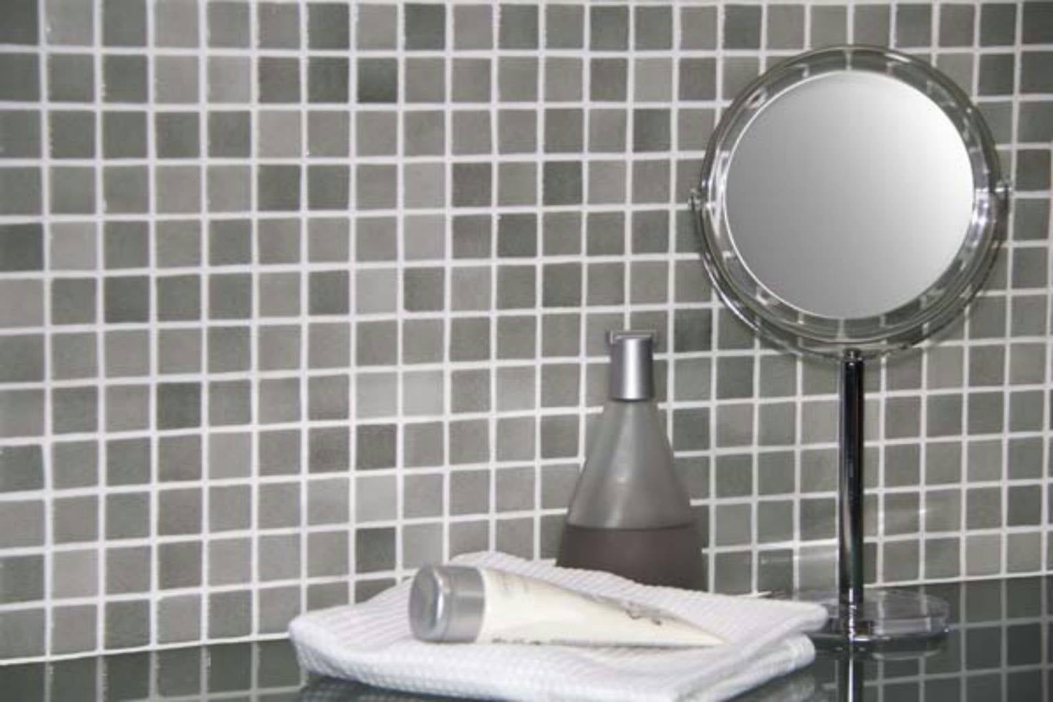 بلاط فسيفساء رمادي لامع، 31.6 × 31.6 سم