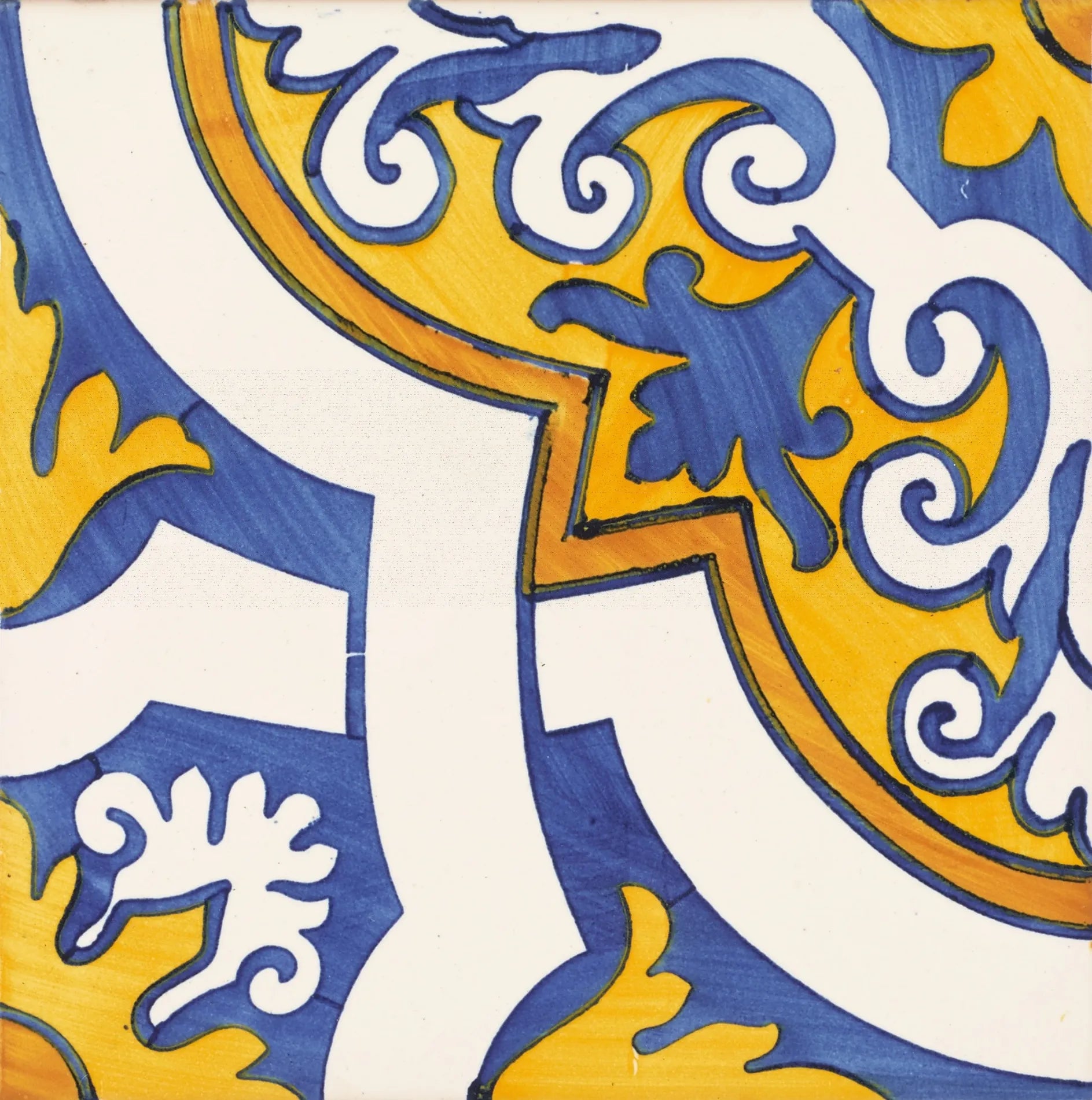 Traditional Hand-Painted Yellow & Blue Branco Portuguese Azulejos Tile, Glossy, 14x14 cm