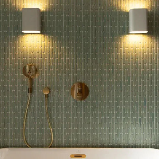 بلاط فسيفساء إشبيلية، بيضاوي، أخضر فاتح لامع، 23×98 مم
