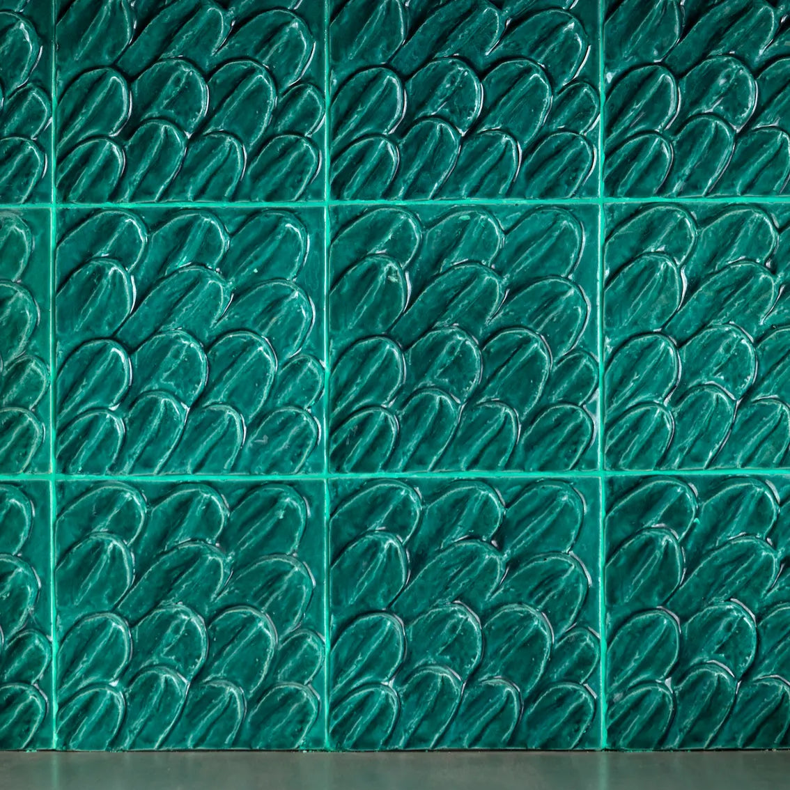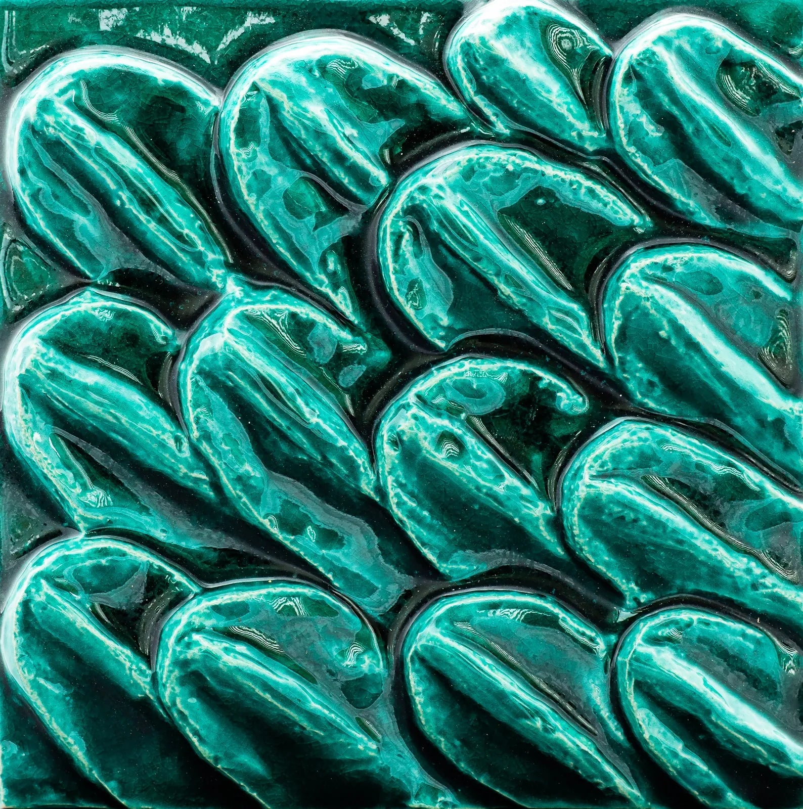 Handcrafted Portuguese Relief Tile, Bela Silva Sereia Verde Glossy, 20x20 cm
