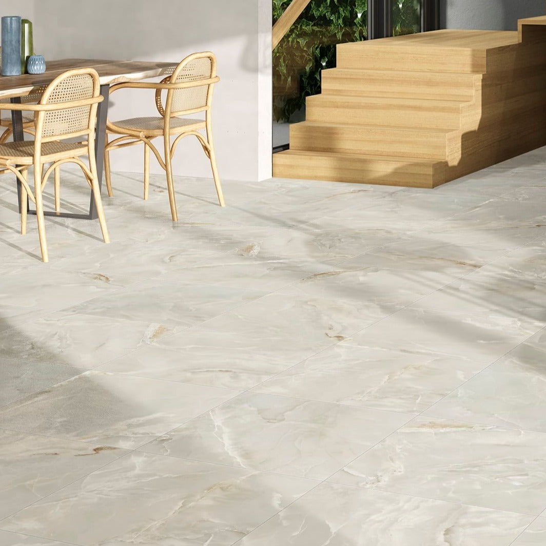 Onyx Ivory Silk Porcelain Tile with Marble Effect, 60x60 cm, 10 mm