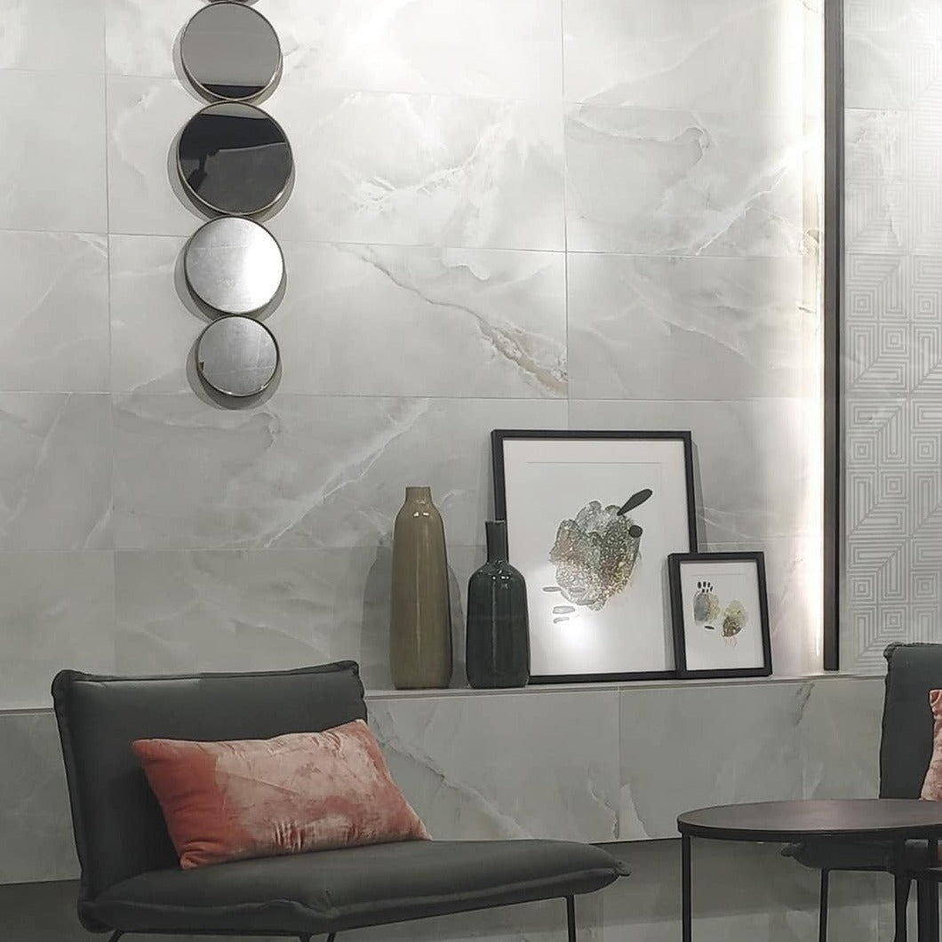 Onyx Light Grey Silk Porcelain Tile with Marble Effect, 60x60 cm