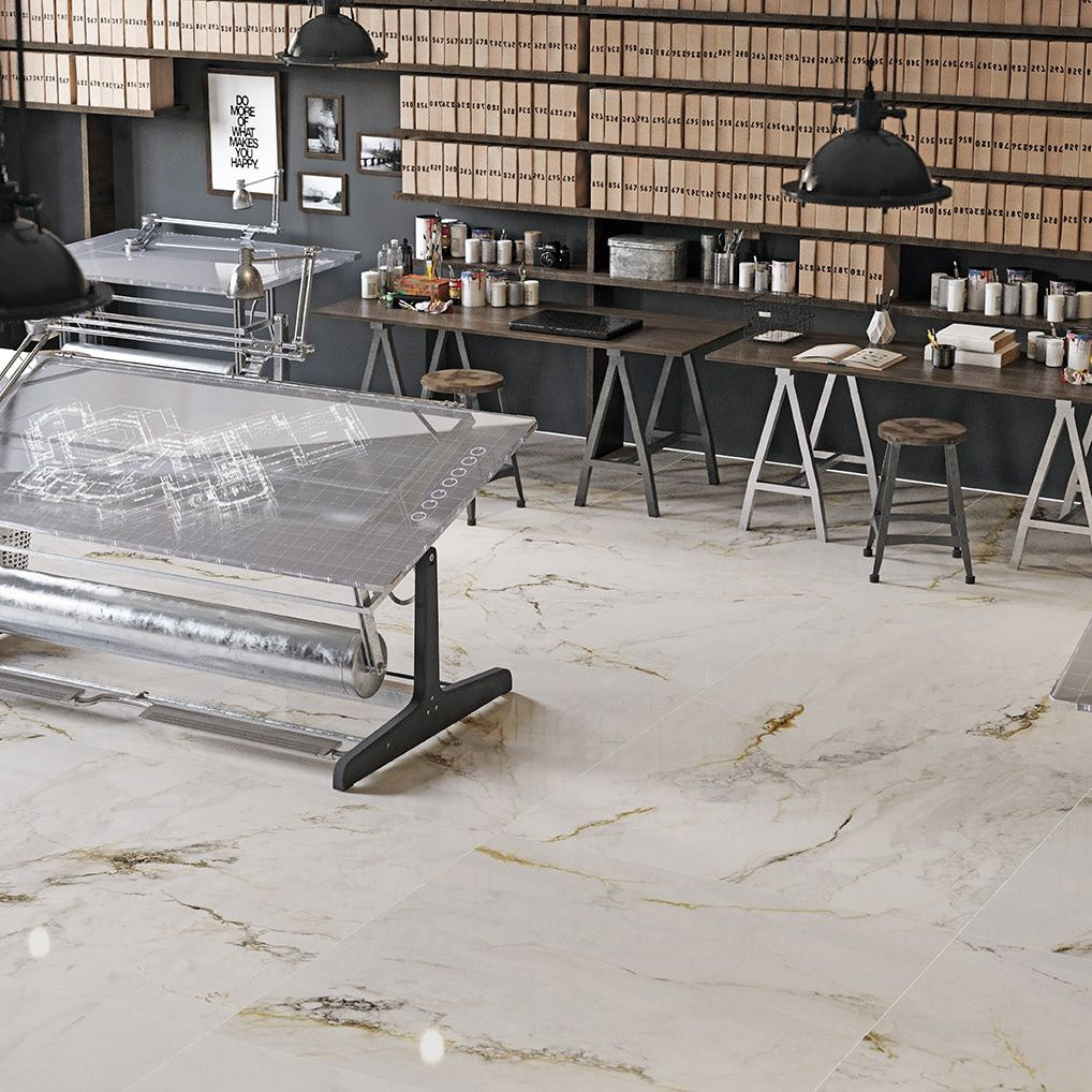 Calacatta Gold Porcelain Tile with Marble Effect, 119x119 cm