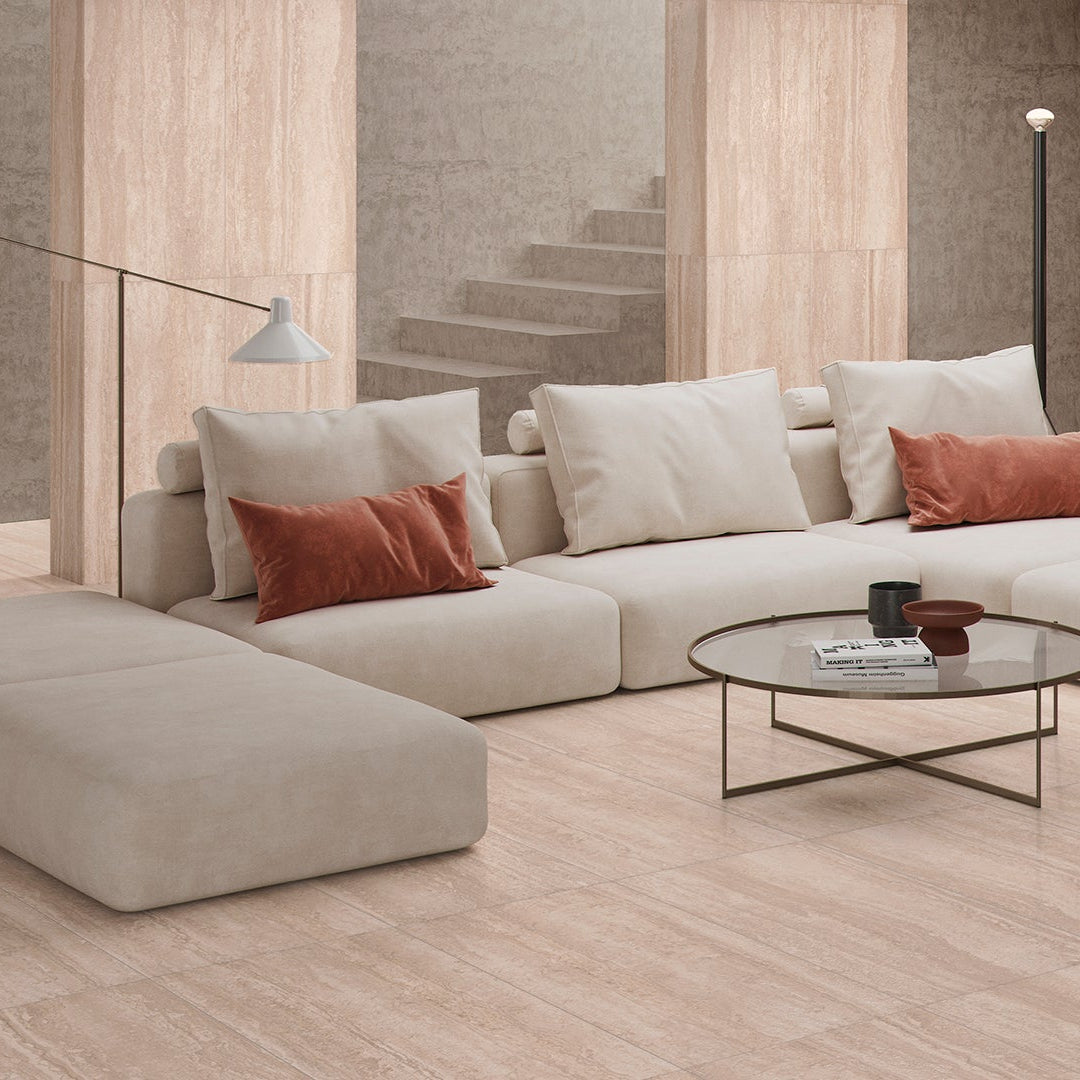 • Matt Finish: Boasts a matt finish that enhances the authenticity of the travertine effect while providing a non-slip surface, ideal for high-traffic areas and wet environments.