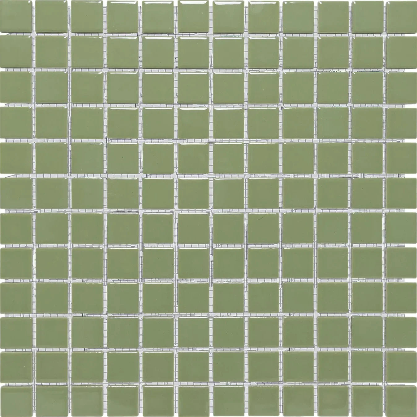 Barcelona Square Mosaic Porcelain Tiles Olive Green, Glossy, 23x23xmm