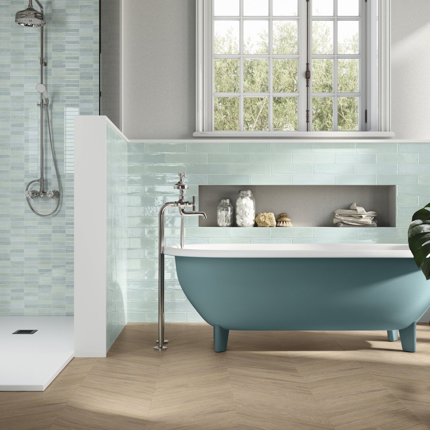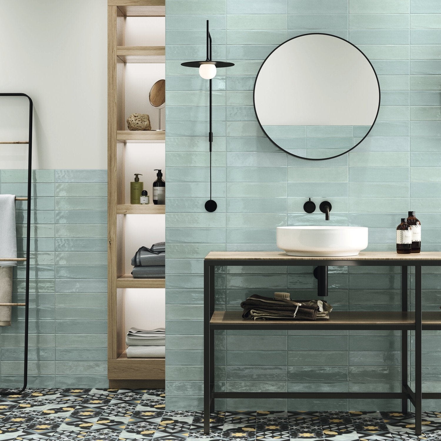 Carmen Mud Light Green Subway Tile, Glossy, 7.5x30 cm, 8 mm