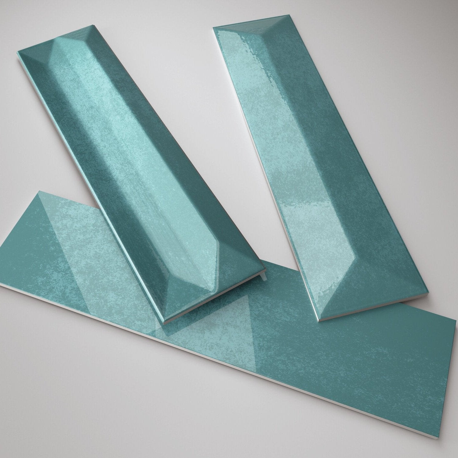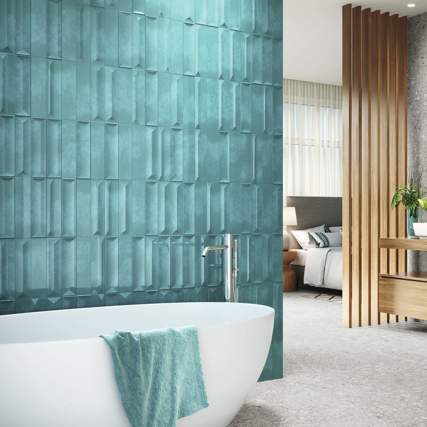Carmen Refraction Acqua Blue Subway Tile, Glossy, 7.5x30 cm, 12 mm