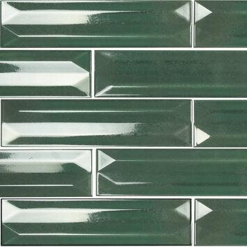 Carmen Refraction Palm Subway Tile, Glossy, Green, 7.5x30 cm, 12 mm