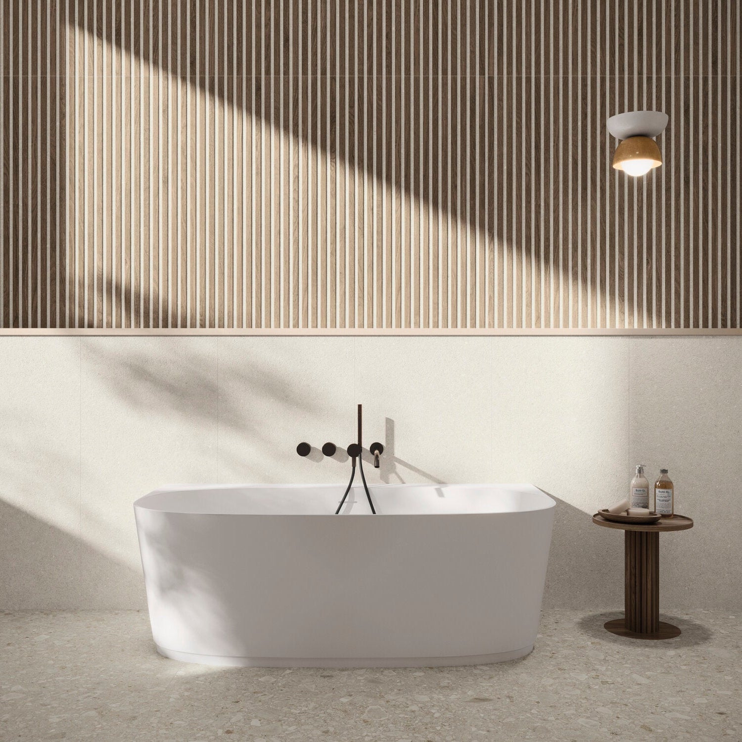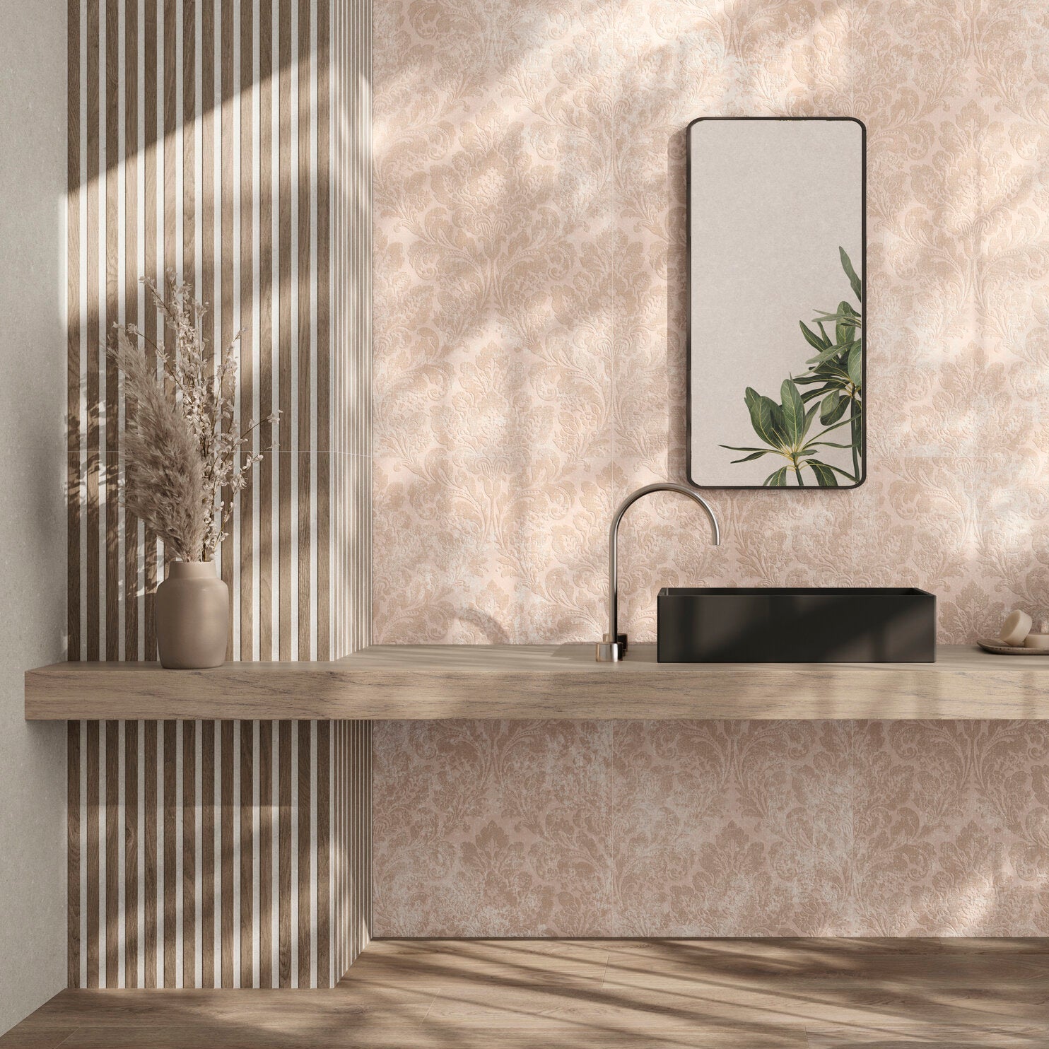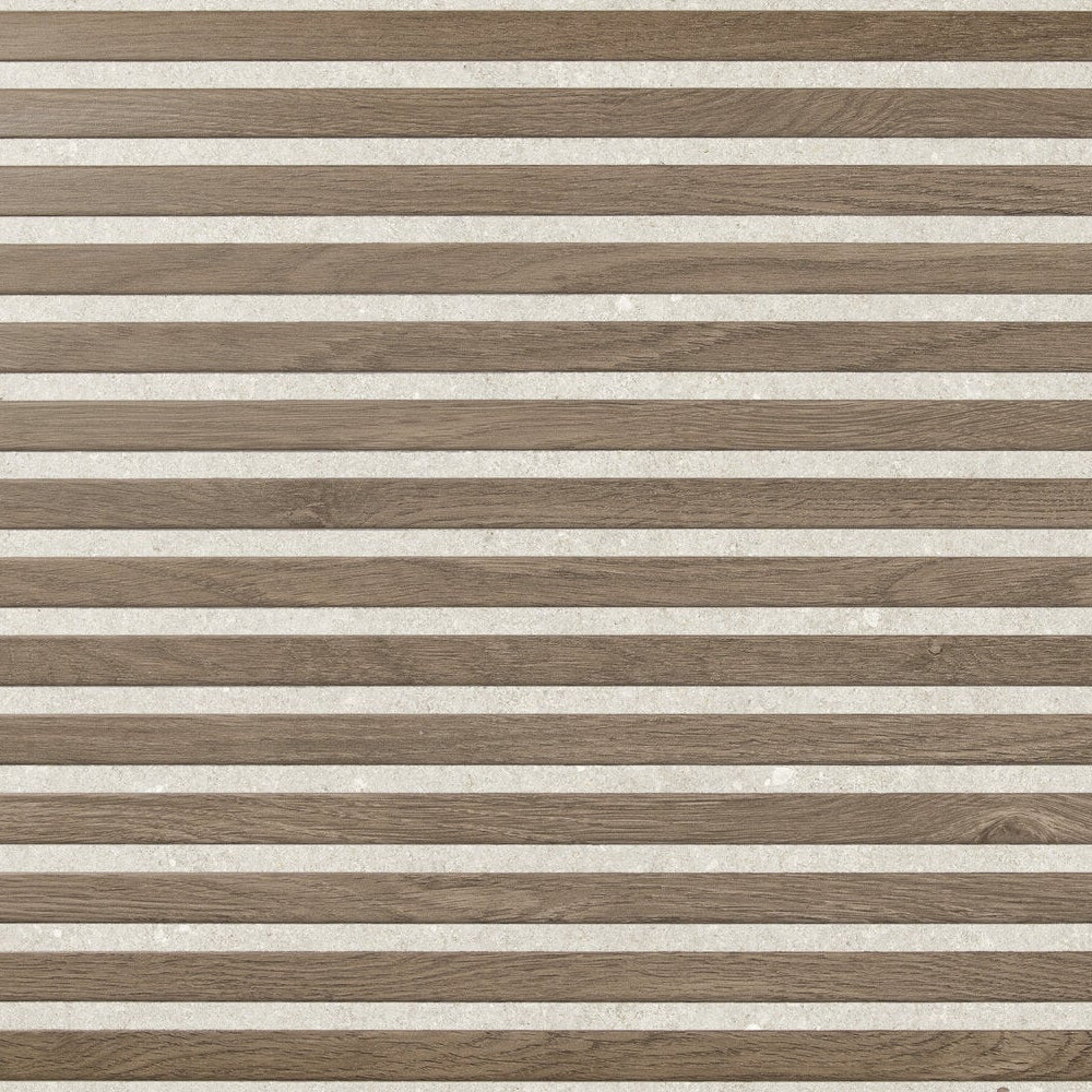 Striped Wood Effect: Unique wood effect design enhanced with soft white lines, combining the warmth of natural timber with a modern striped aesthetic.