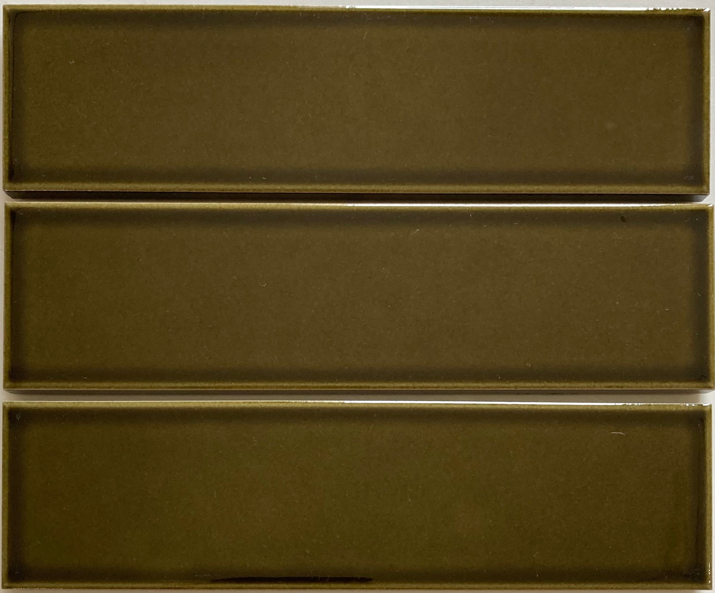 Koguchi Nichogake Olive Green Subway Tile, Glossy, 6x10.8 cm