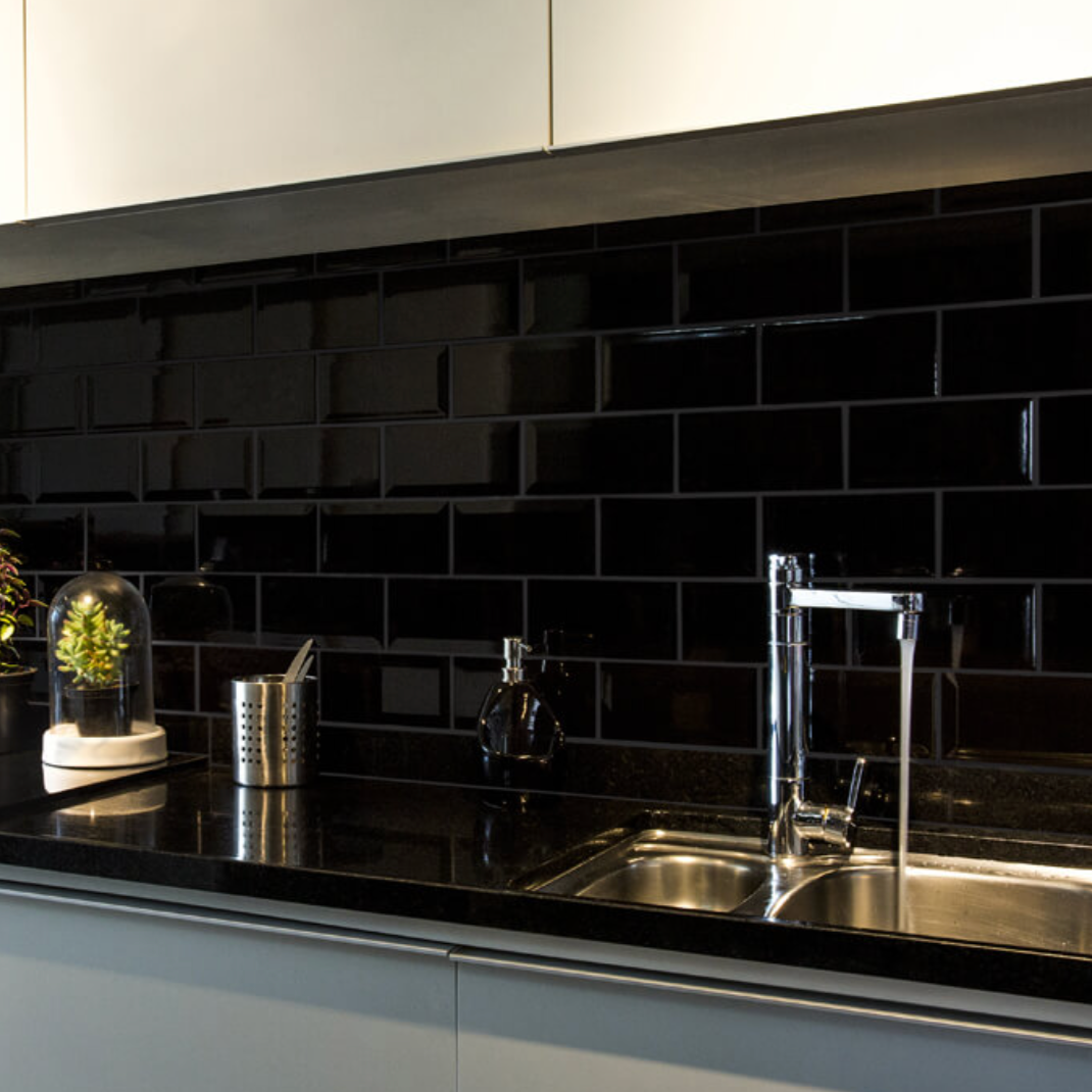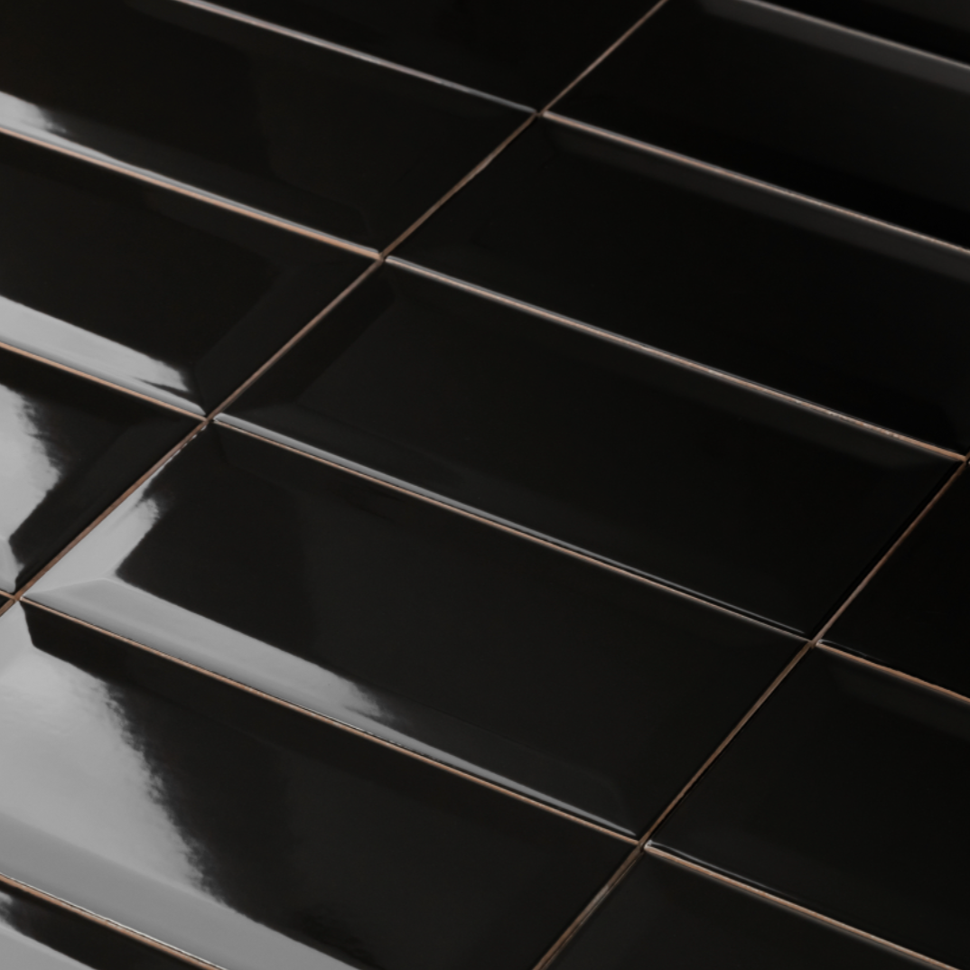 Metro Black Subway Tile: Enhance your space with the sleek and timeless appeal of the Metro Black ceramic subway tile, featuring a 10 mm thickness, glossy finish, and classic 10x20 cm size.