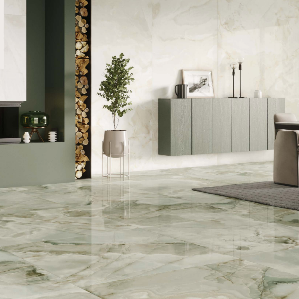 Big Slab Porcelain Tile with Marble Effect: Immerse your space in luxury with this large-format tile that replicates the timeless beauty of marble.