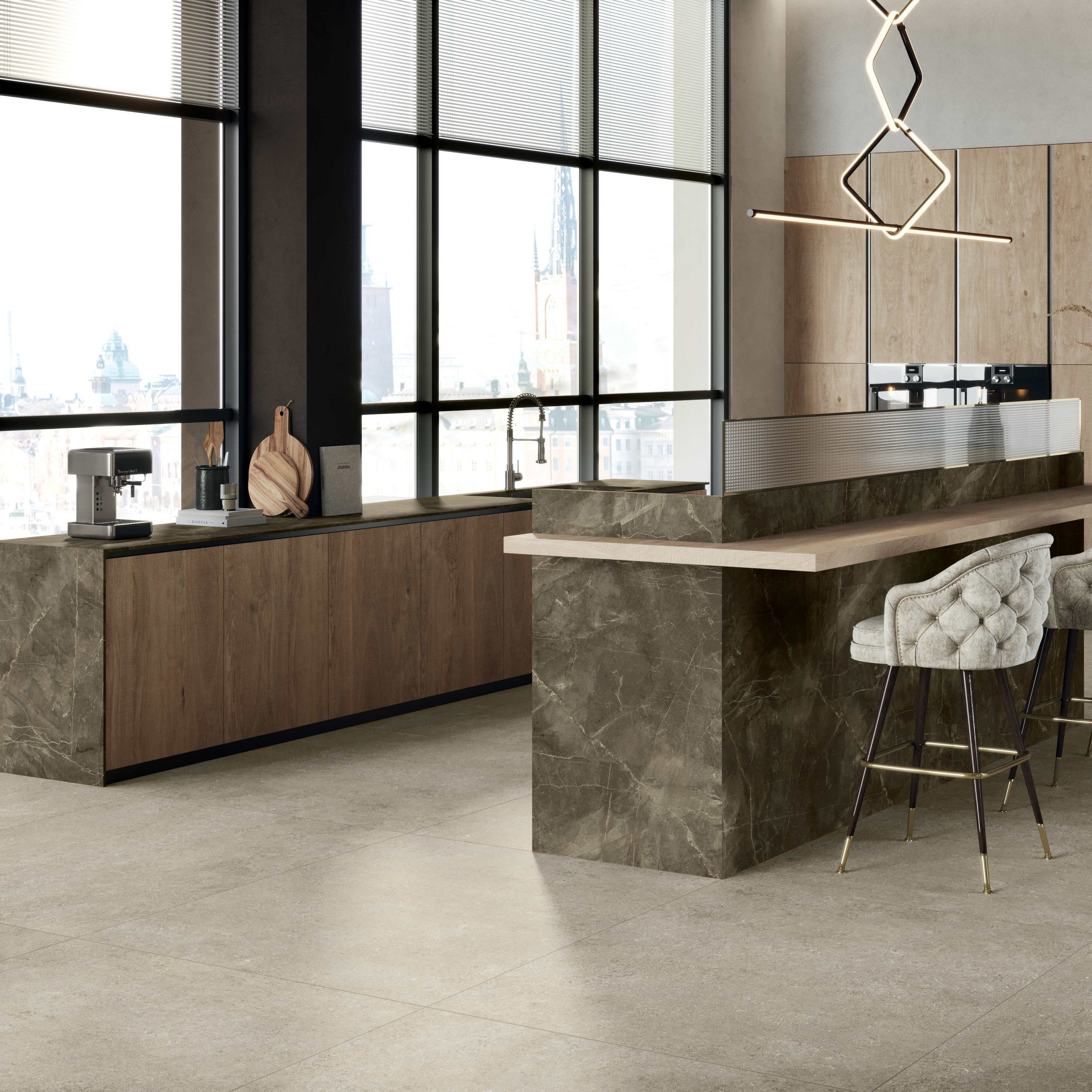 Modern and Timeless Design: The combination of the big slab design and Stone marble effect offers a modern interpretation of classic elegance, blending timeless aesthetics with contemporary style.