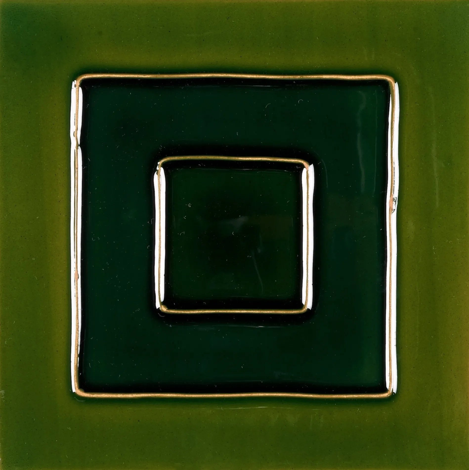 Traditional Hand-Painted Portuguese Azulejos Arestas Tile, Squares Verde Glossy, 14x14 cm