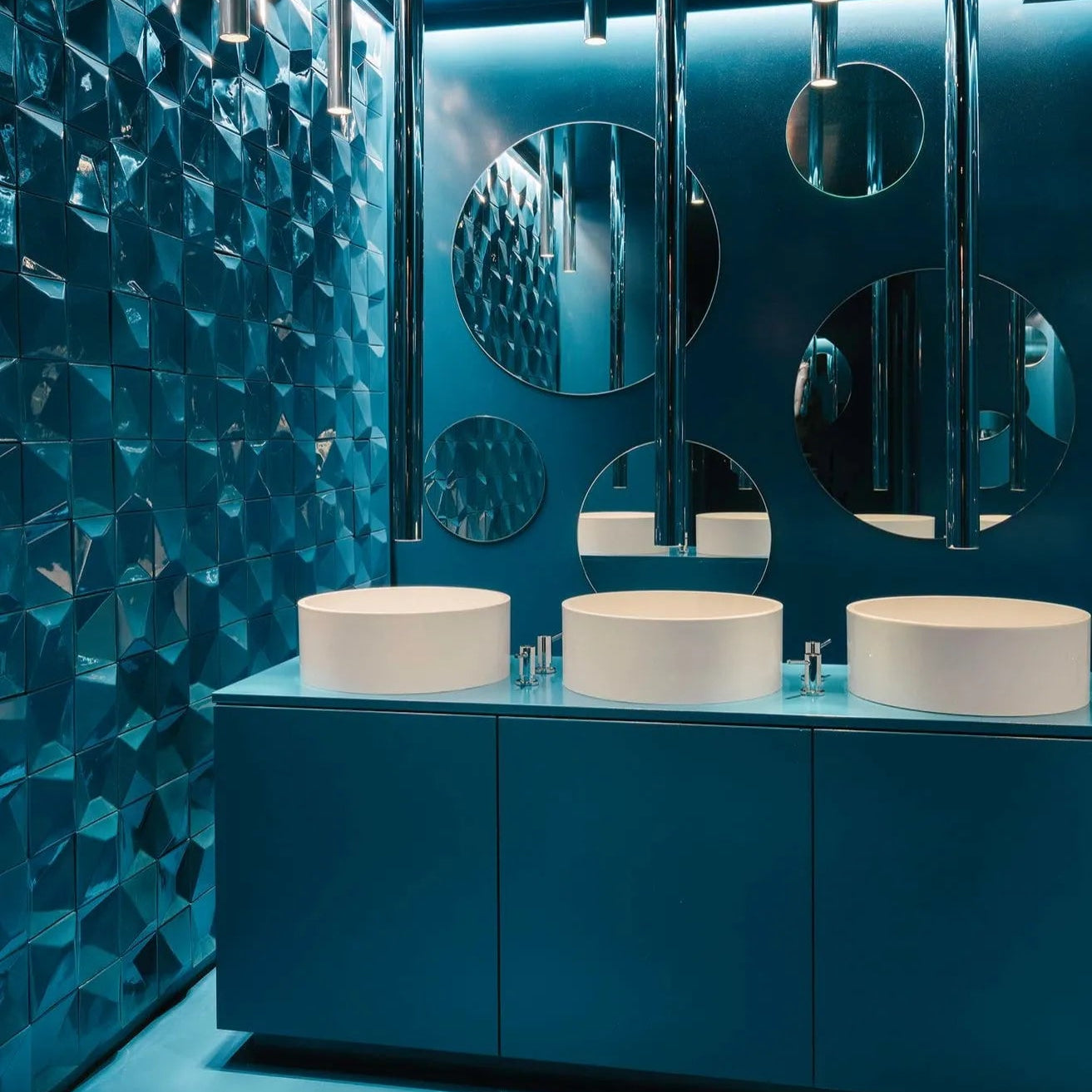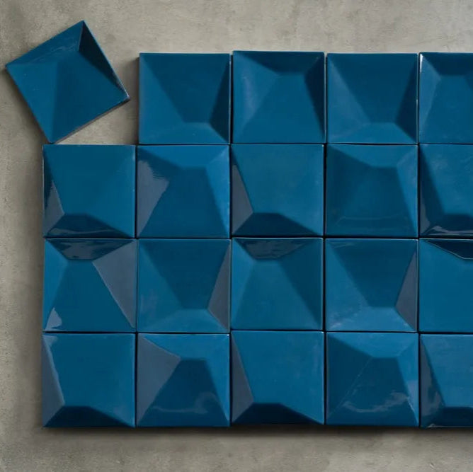 Handcrafted Portuguese Relief Tile, Czech Alto Relevo Direito Azul Glossy, 14x14 cm
