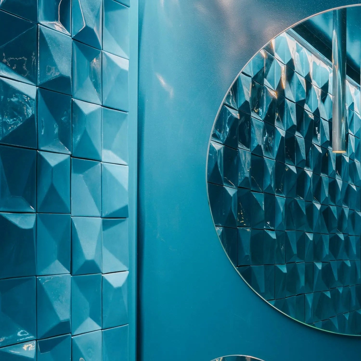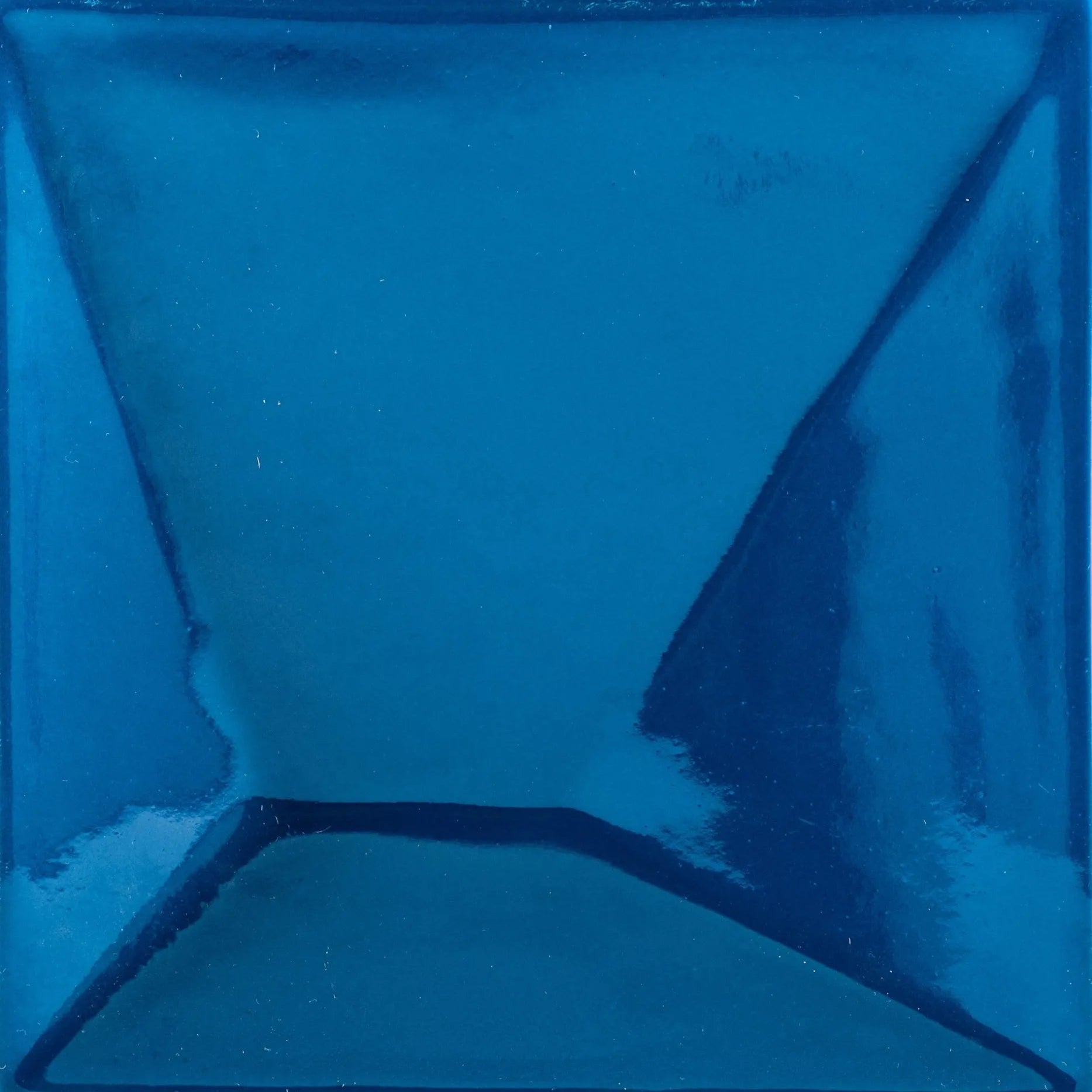 Handcrafted Portuguese Relief Tile, Czech Baixo Relevo Direito Azul Glossy, 14x14 cm