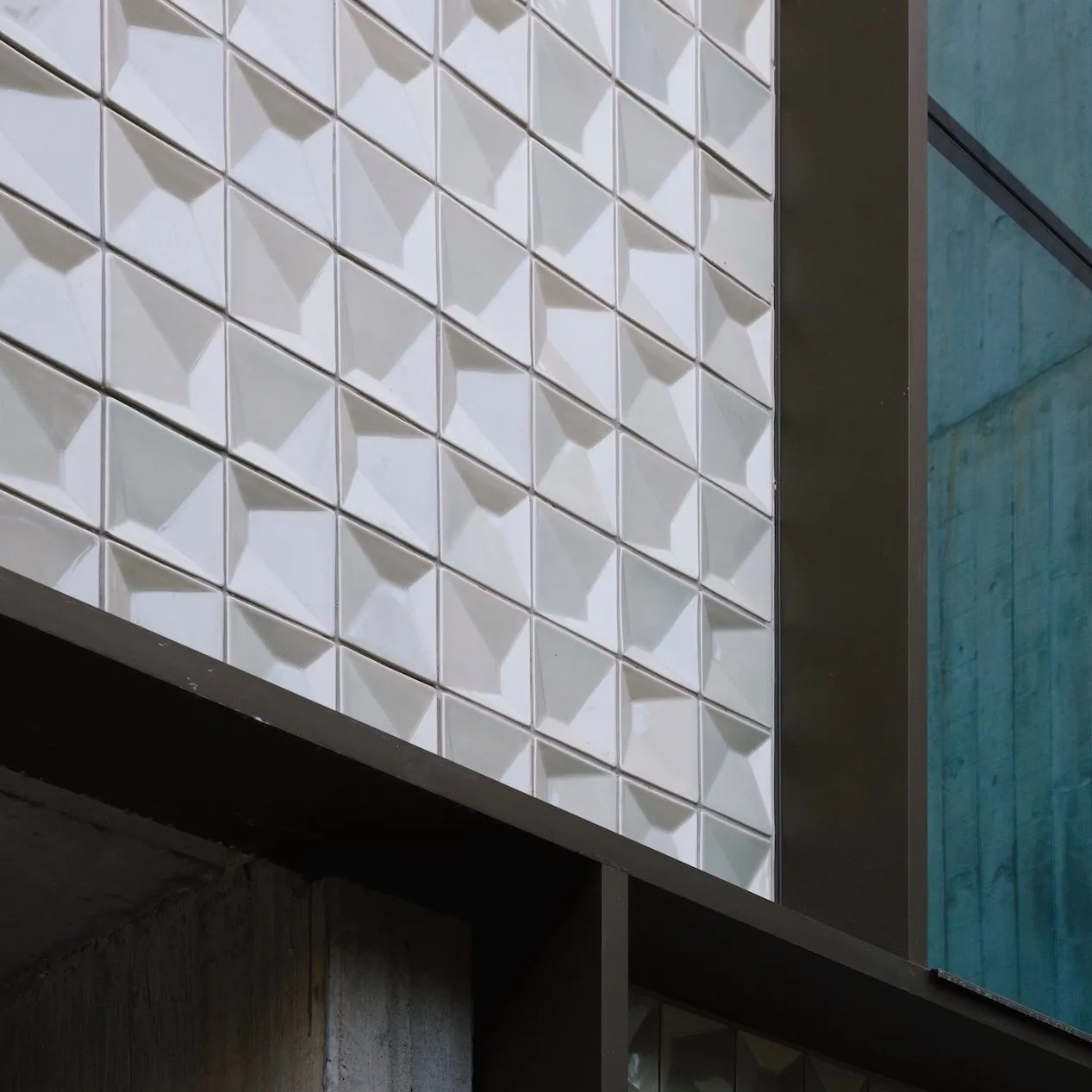 Handcrafted Portuguese Relief Tile by Miguel Saraiva, Triangulos Branco Glossy, 14x14 cm