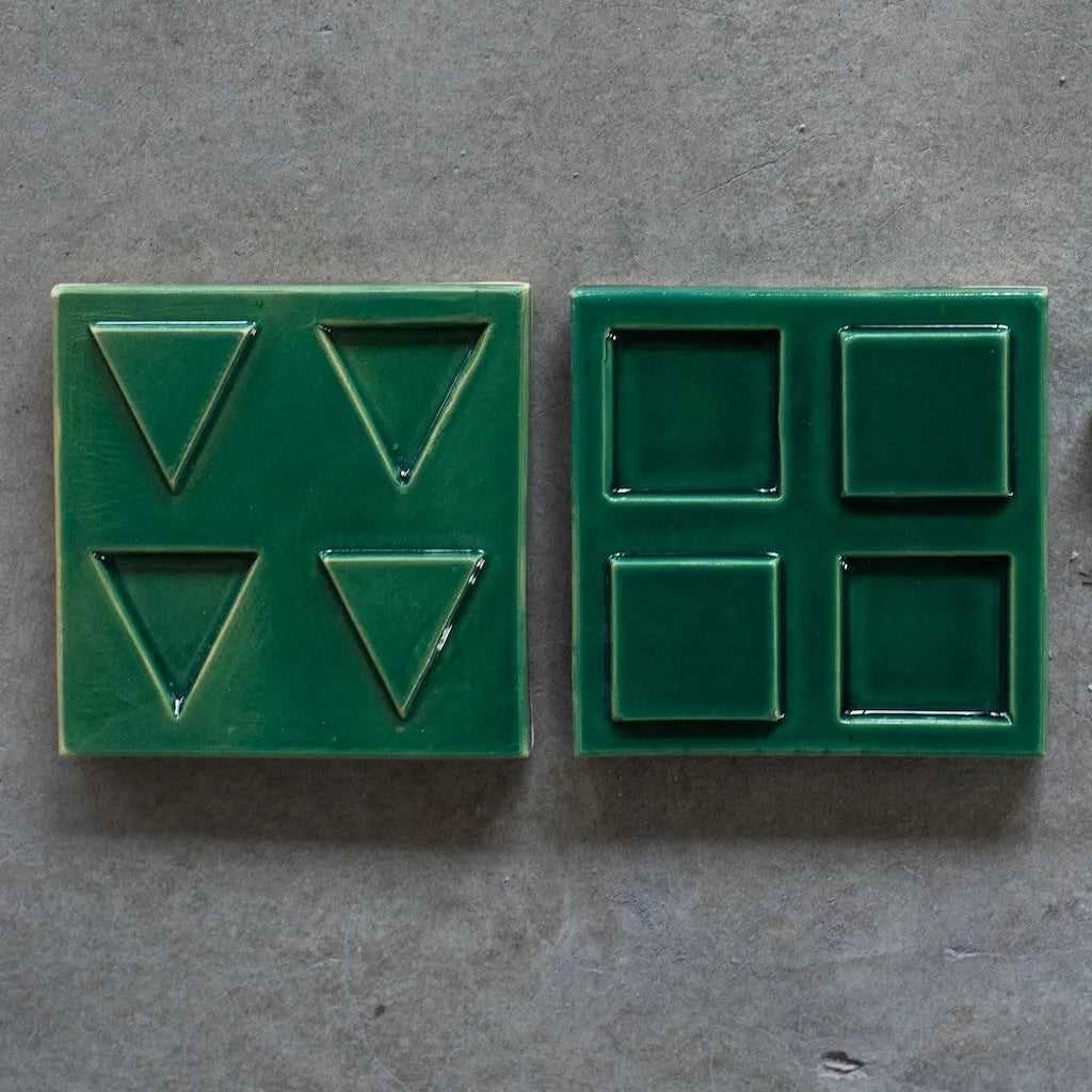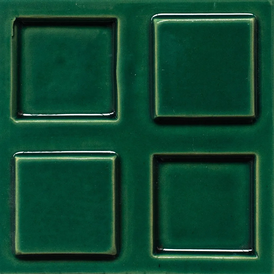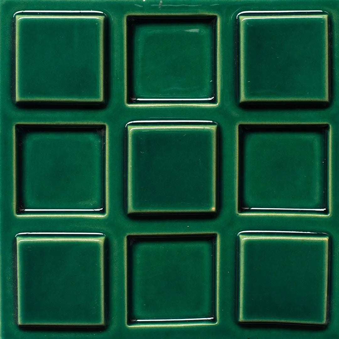 Handcrafted Portuguese Relief Tile by Miguel Saraiva, Quadrados Verde Glossy, 10x10 cm