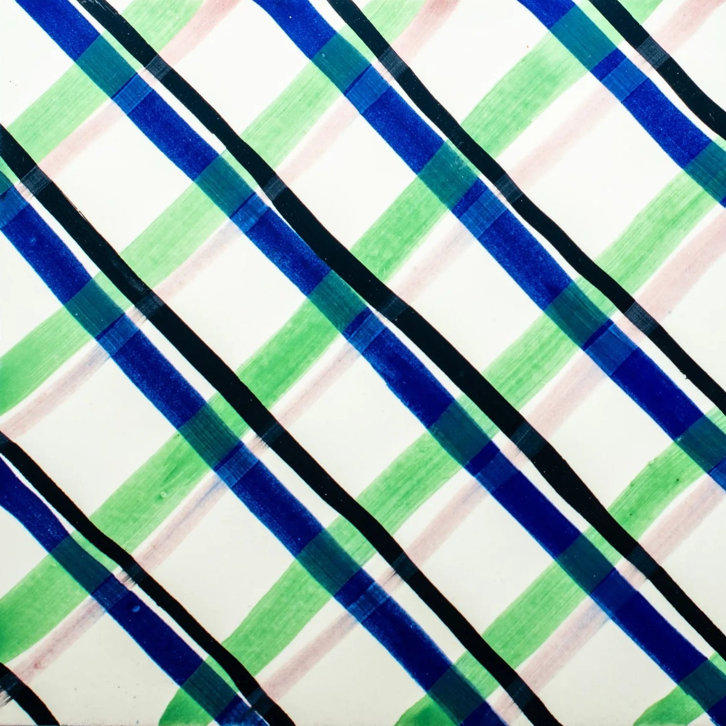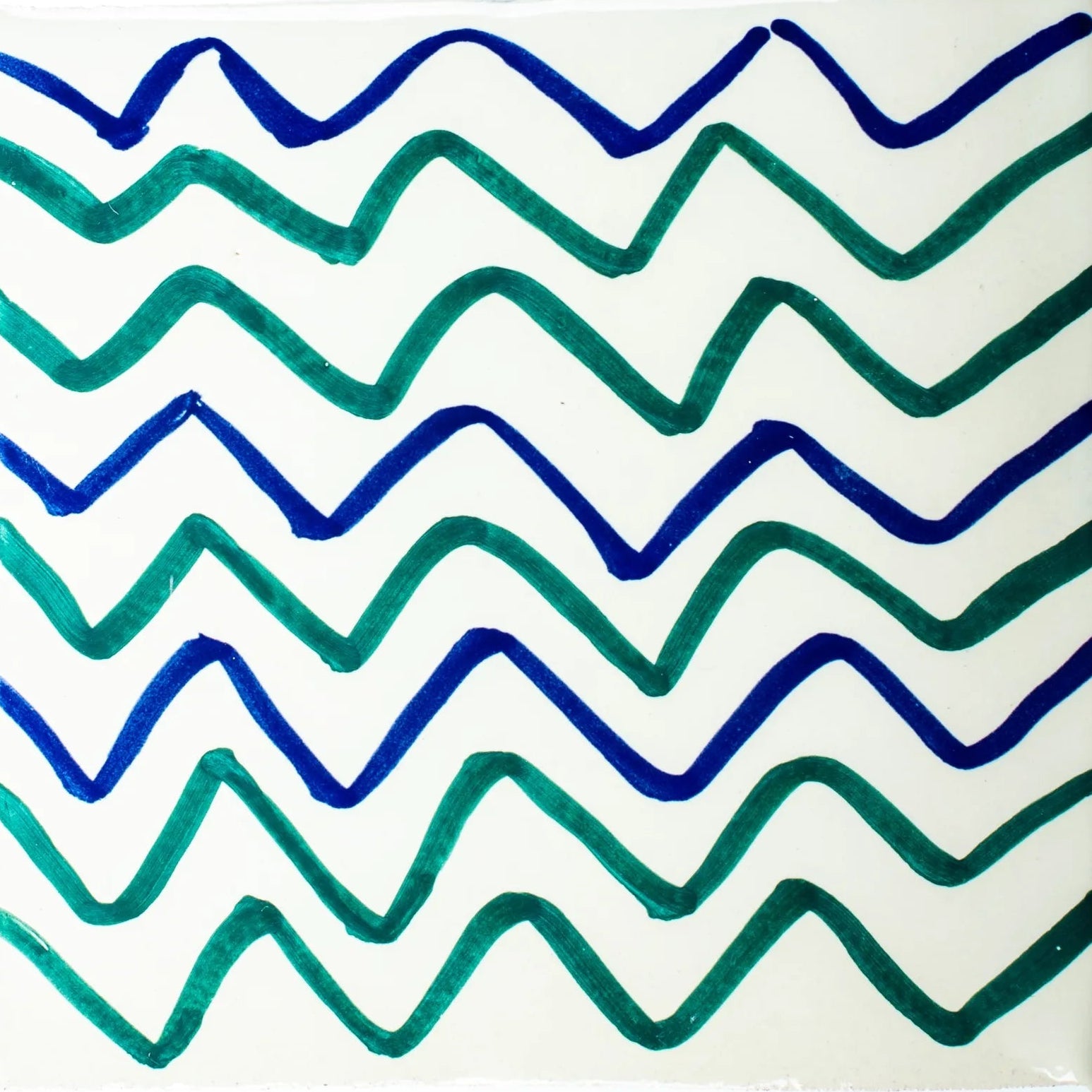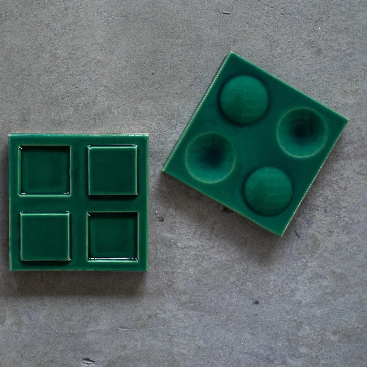 Handcrafted Portuguese Relief Tile by Miguel Saraiva, Quadrados Verde Glossy, 10x10 cm