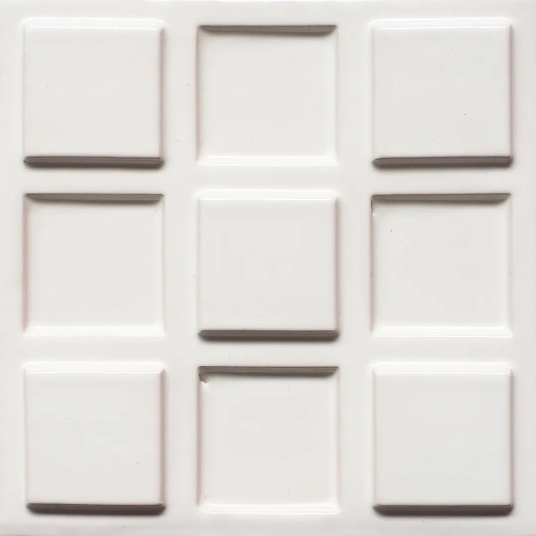 Handcrafted Portuguese Relief Tile by Miguel Saraiva, Quadrados Branco T1 Glossy, 14x14 cm