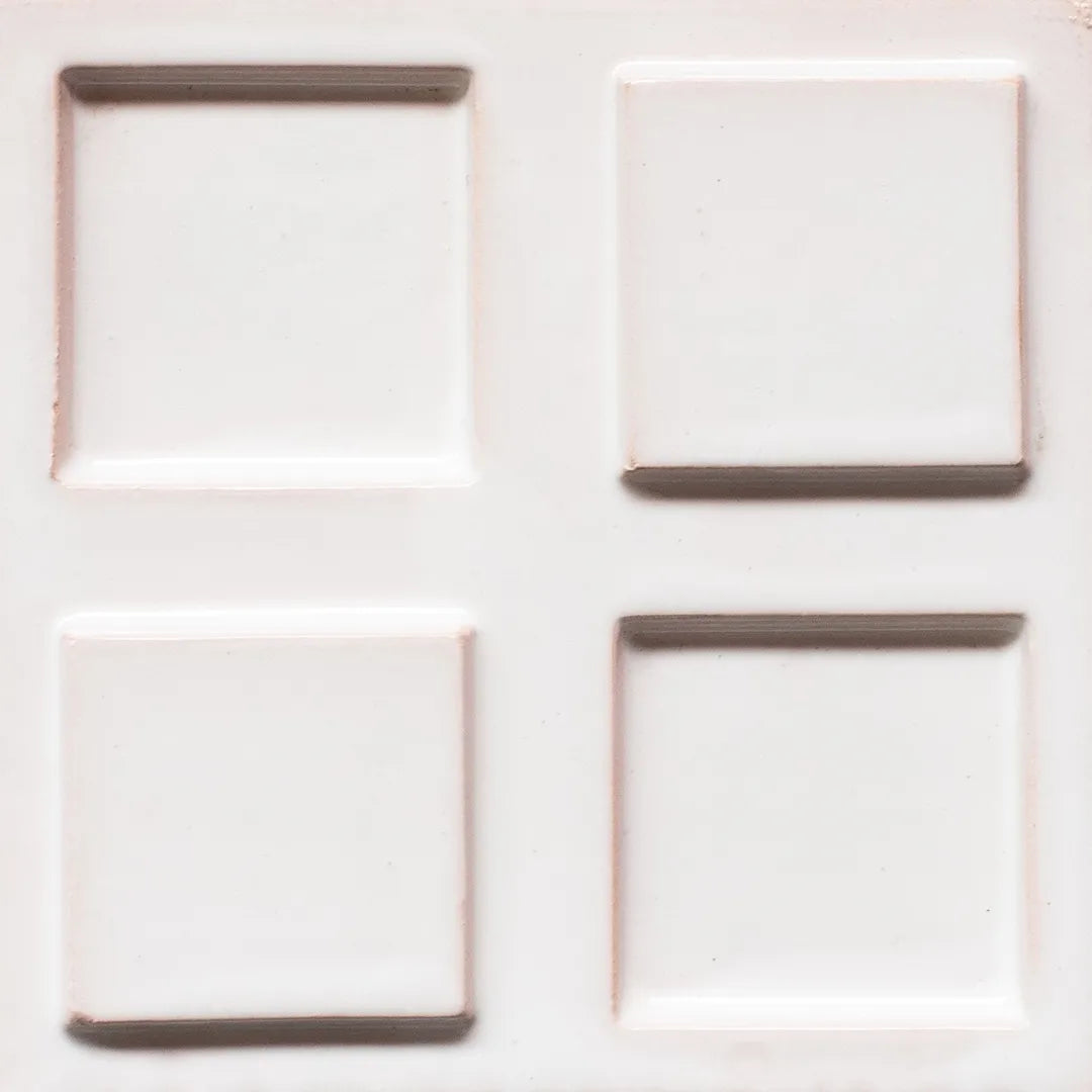 Handcrafted Portuguese Relief Tile by Miguel Saraiva, Quadrados Branco T1 Glossy, 10x10 cm