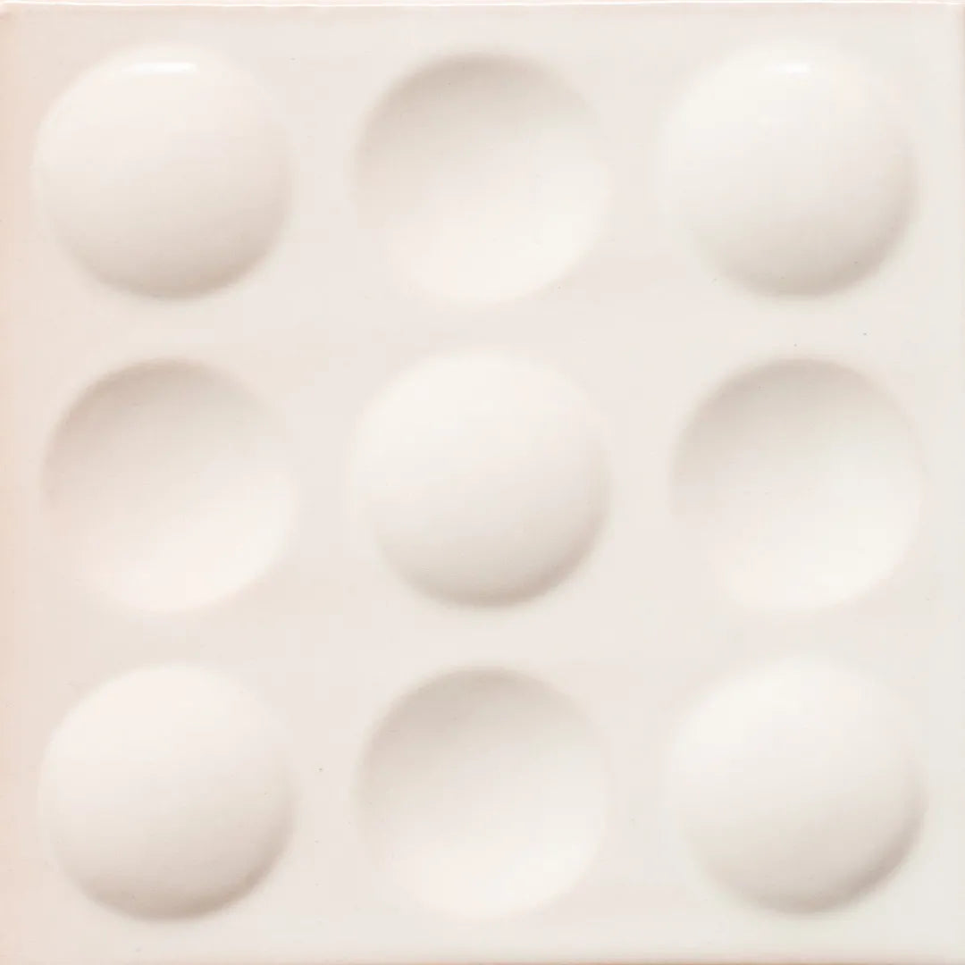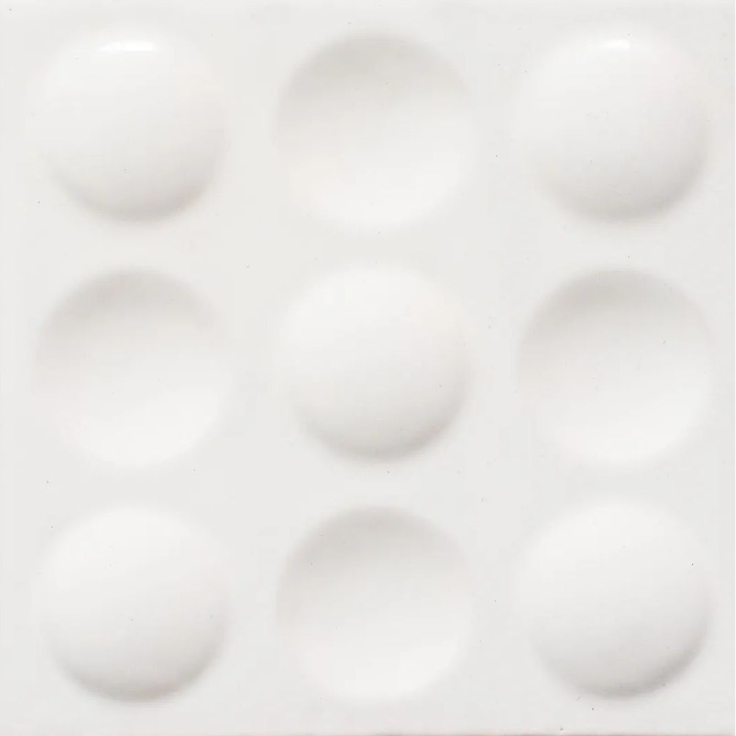 Handcrafted Portuguese Relief Tile by Miguel Saraiva, Circulos Branco Glossy, 10x10 cm
