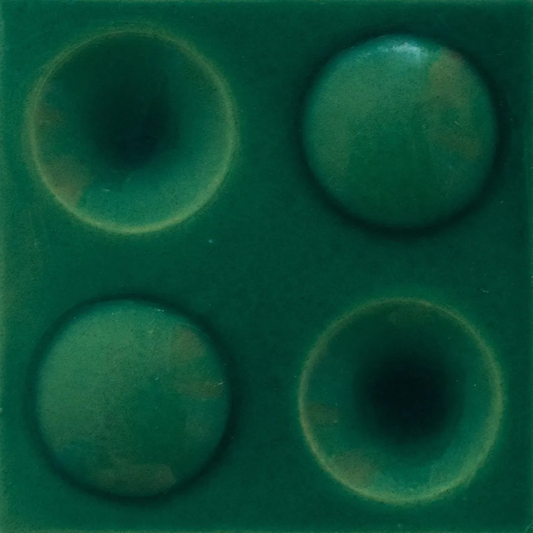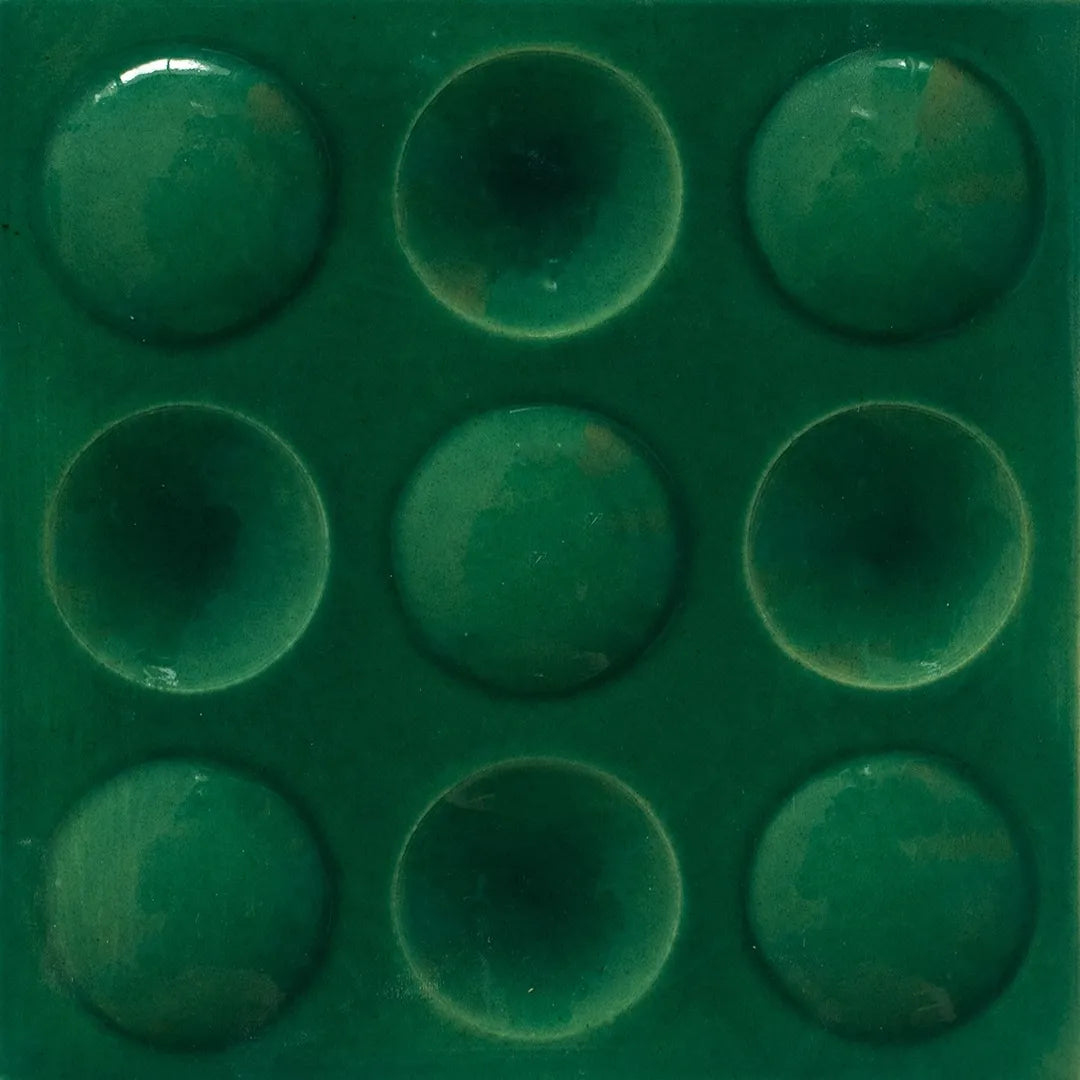 Handcrafted Portuguese Relief Tile by Miguel Saraiva, Circulos Verde Glossy, 10x10 cm