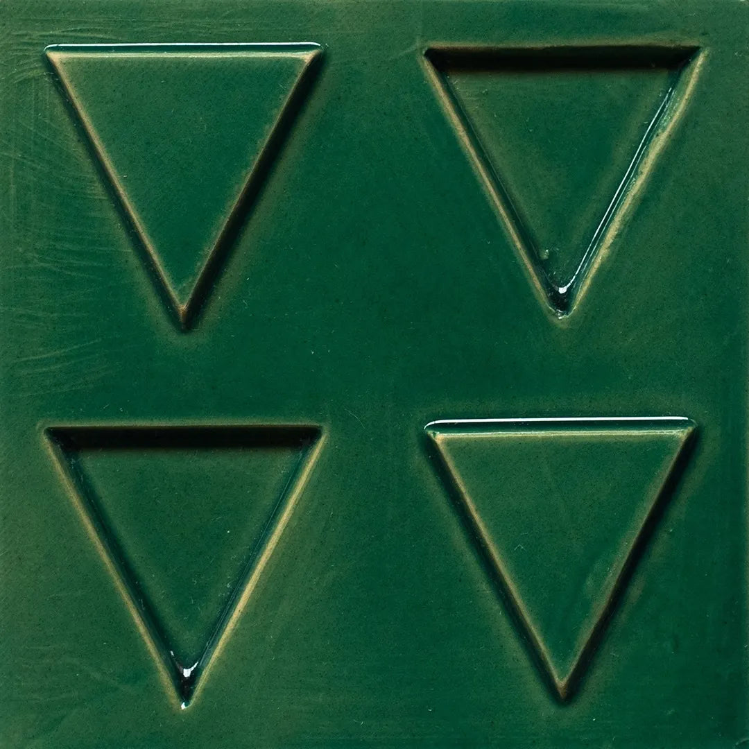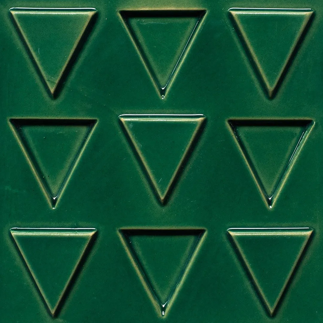Handcrafted Portuguese Relief Tile by Miguel Saraiva, Triangulos Verde Glossy, 10x10 cm