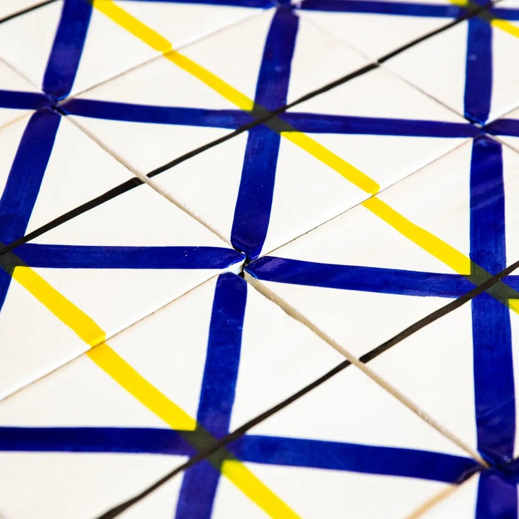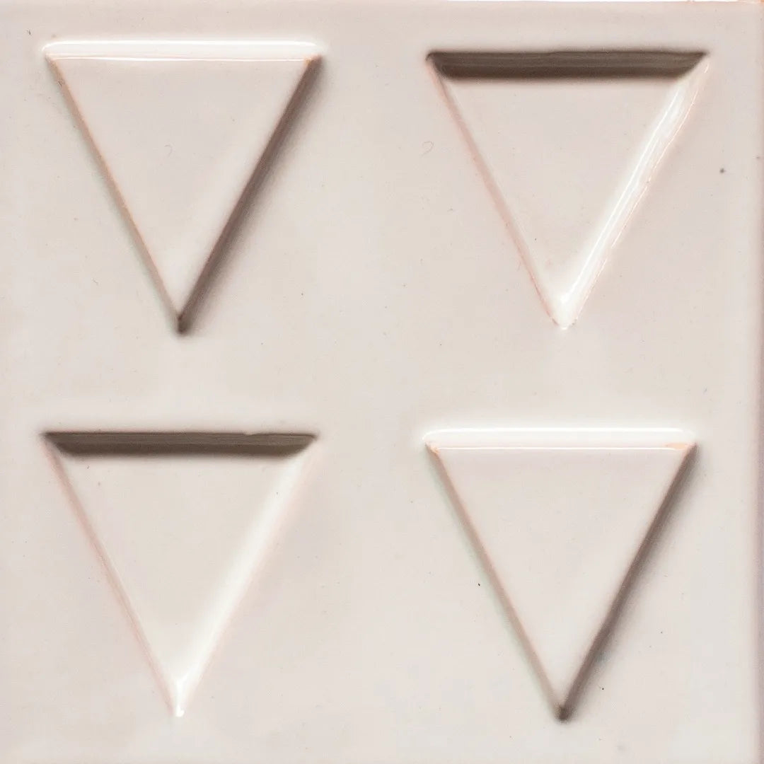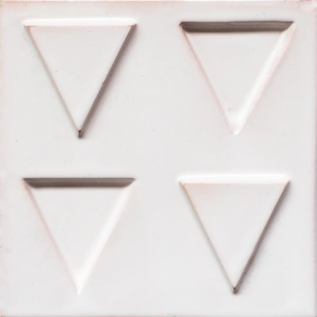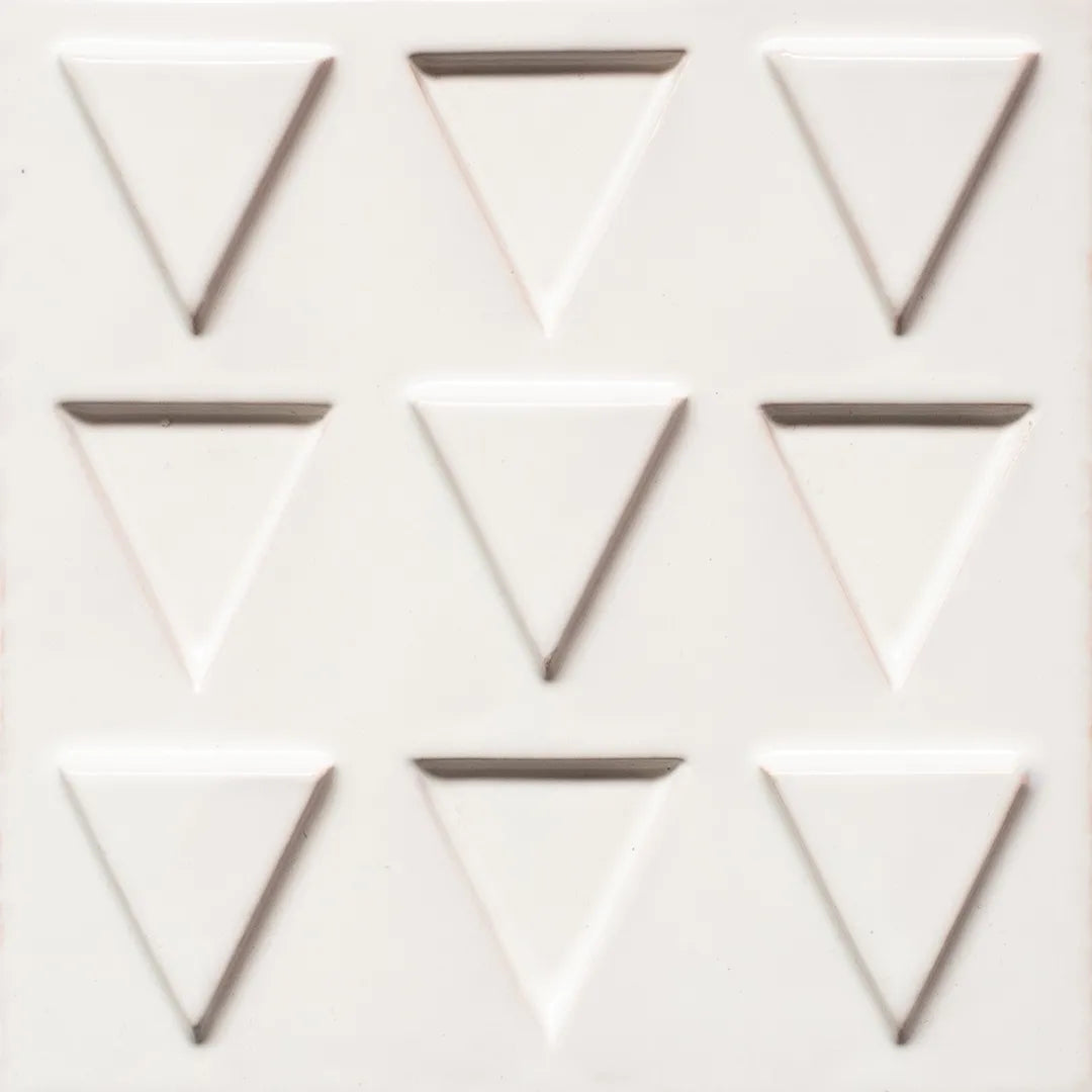 Handcrafted Portuguese Relief Tile by Miguel Saraiva, Triangulos Branco Glossy, 10x10 cm