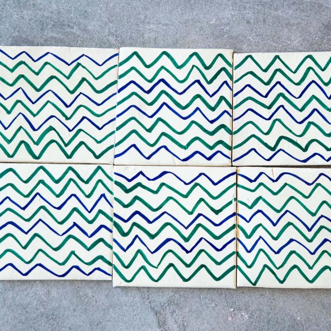 Handcrafted Portuguese Tile, Bela Silva Tavira Model 3 Glossy, 14x14 cm