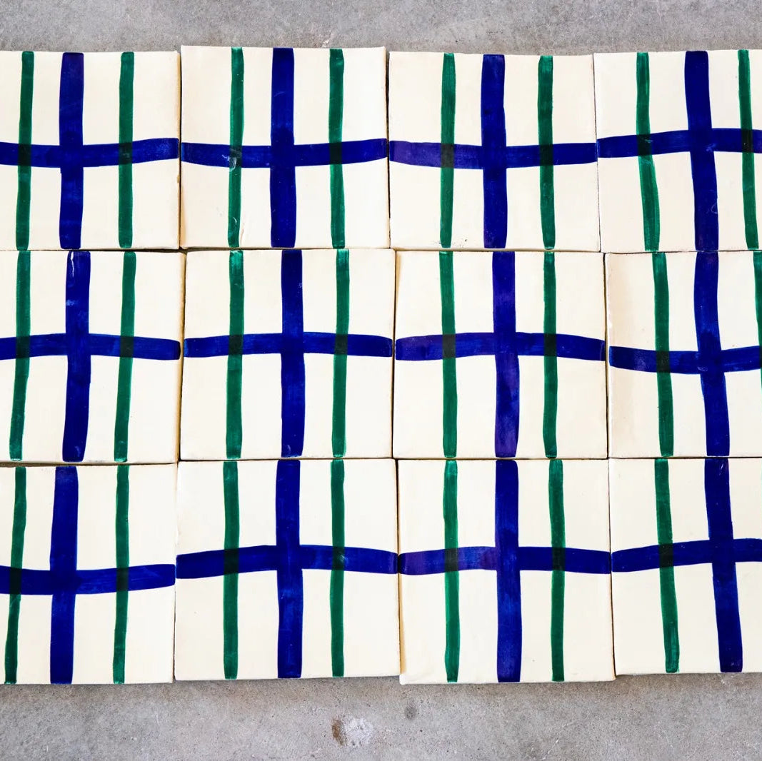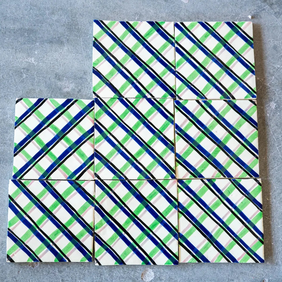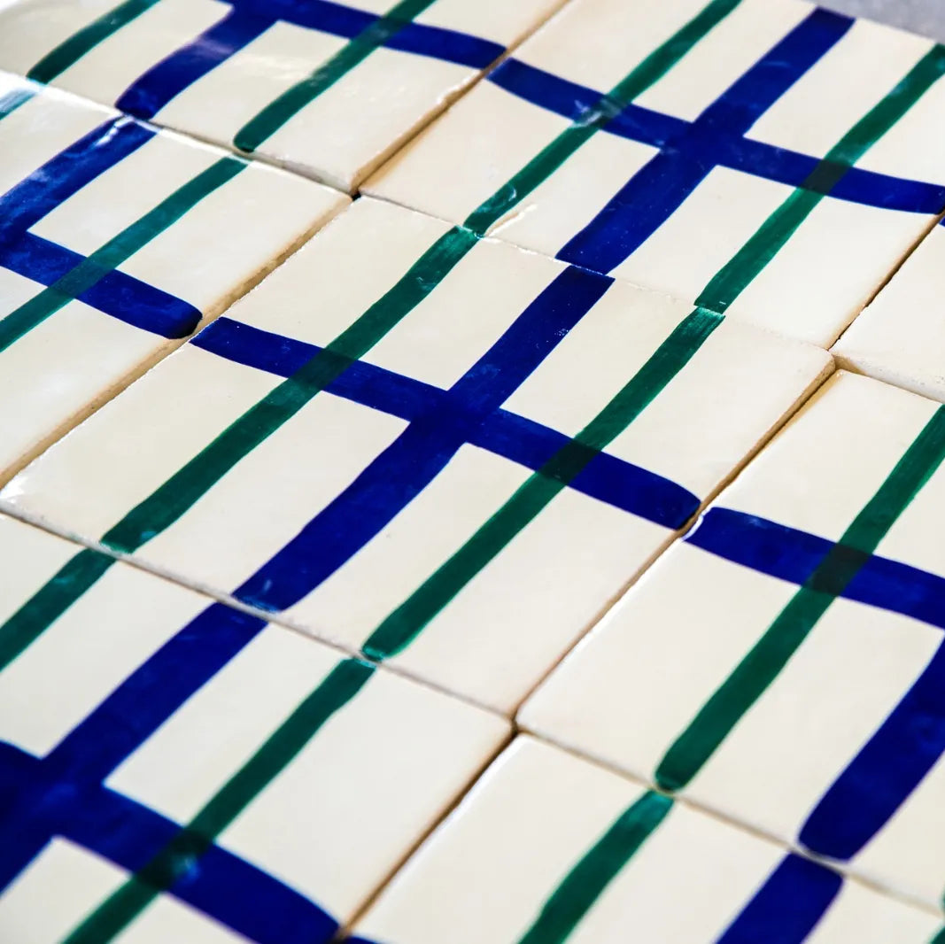 Handcrafted Portuguese Tile, Bela Silva Tavira Model 1 Glossy, 14x14 cm
