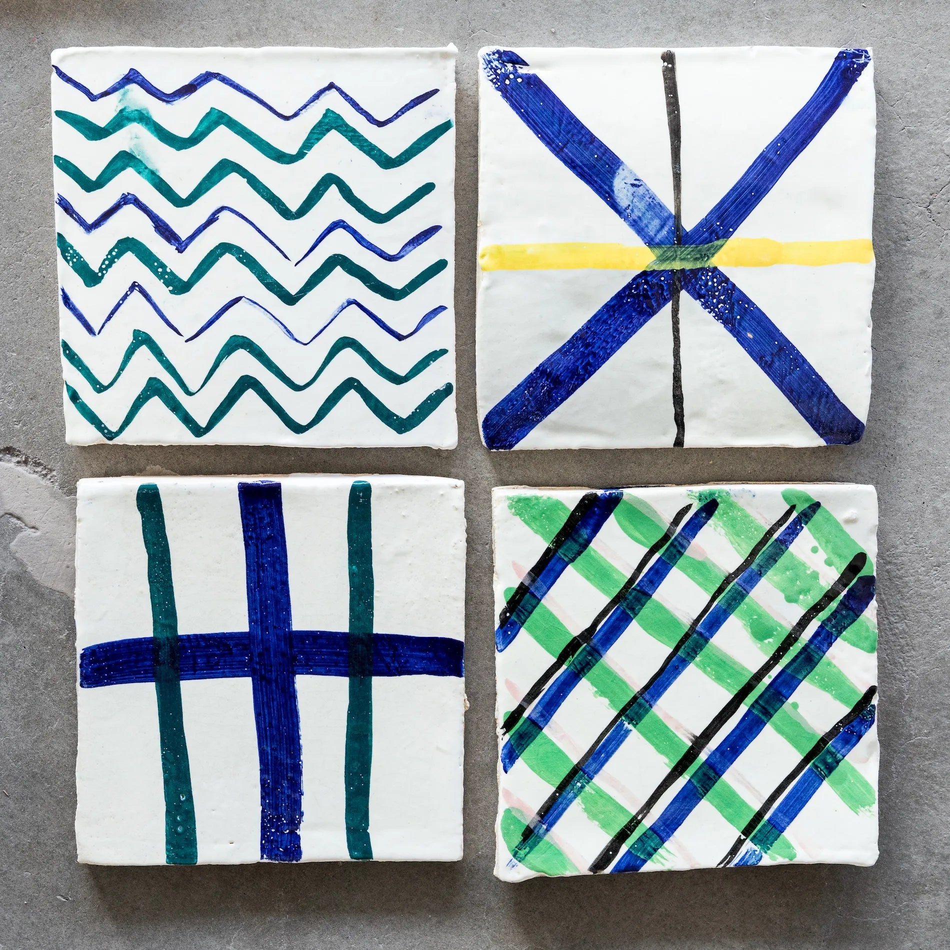 Handcrafted Portuguese Tile, Bela Silva Tavira Model 4 Glossy, 14x14 cm