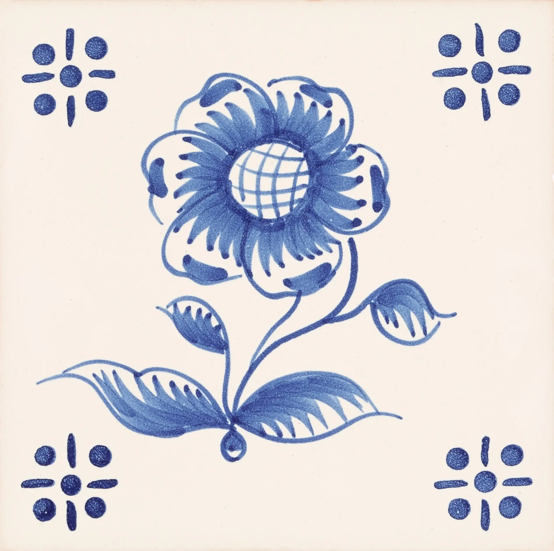 Traditional Hand-Painted 1ª Metade Blue Sunflower Portuguese Tile, Glossy, 14x14 cm