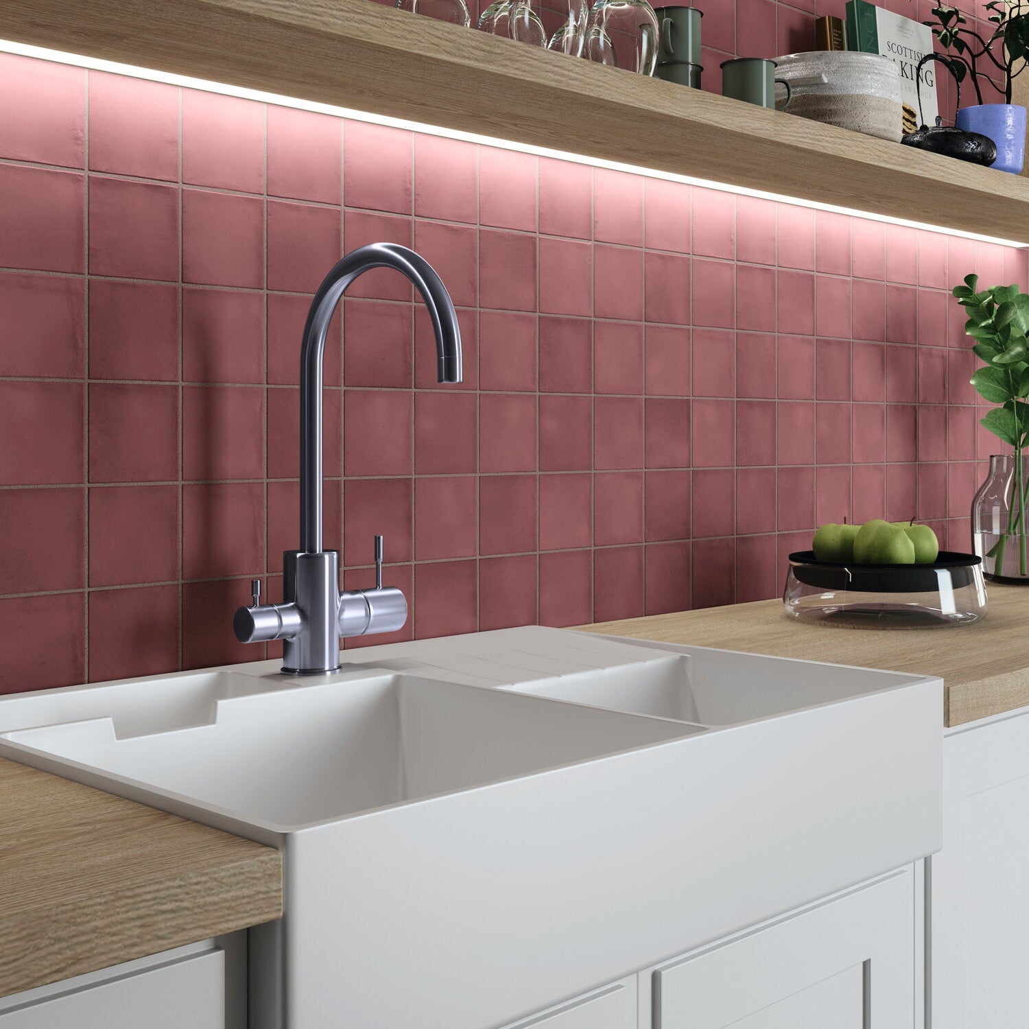 Handcrafted Portuguese SUD Tile, Coral Square Glossy