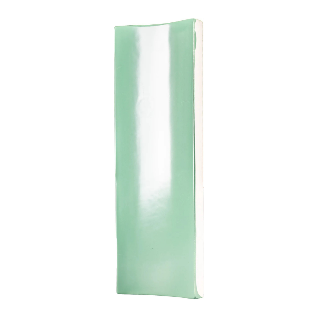 Handcrafted Portuguese Azulejos Relief Tile, Concave Profile XXL Verde Glossy, 13x35 cm