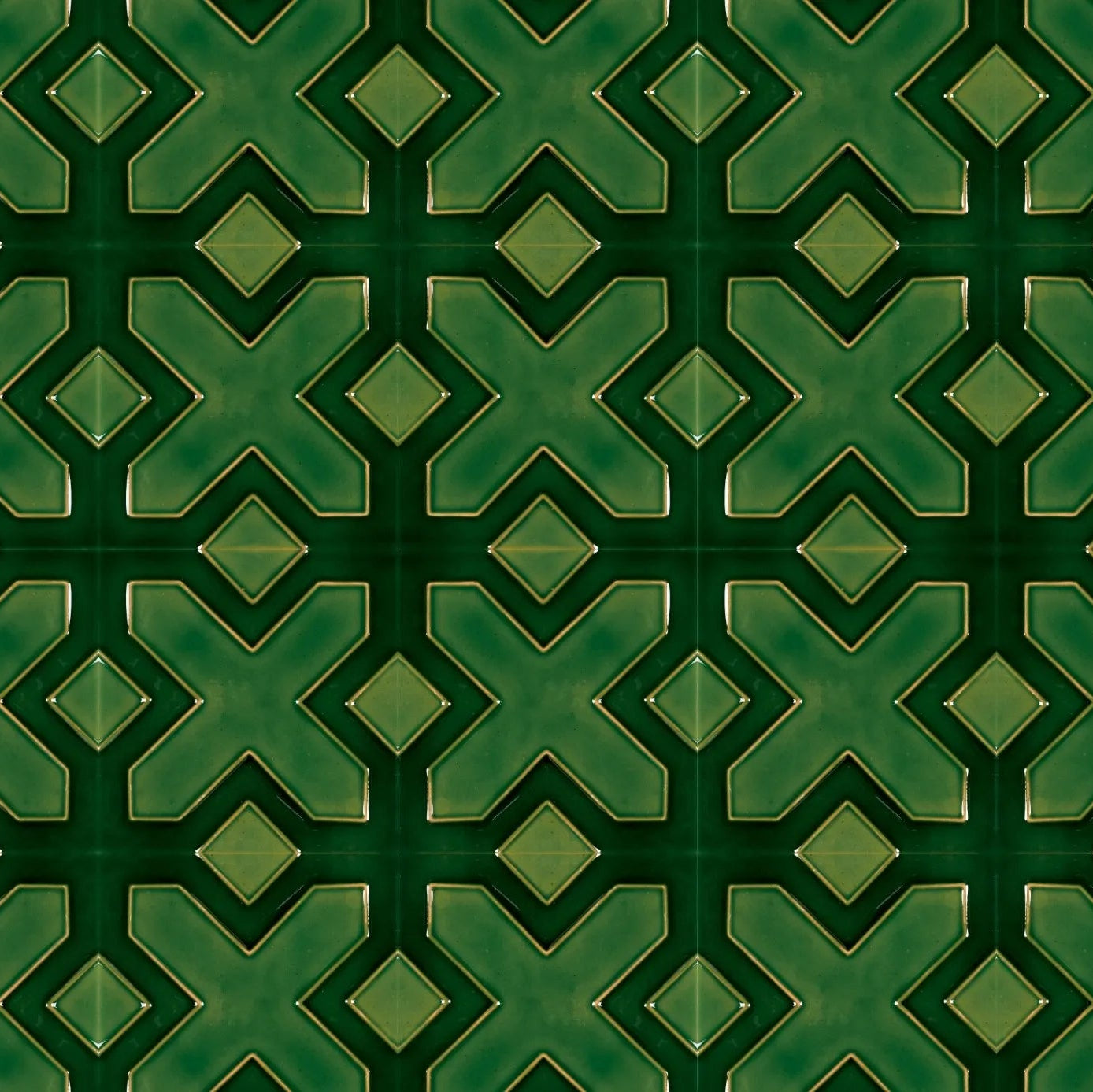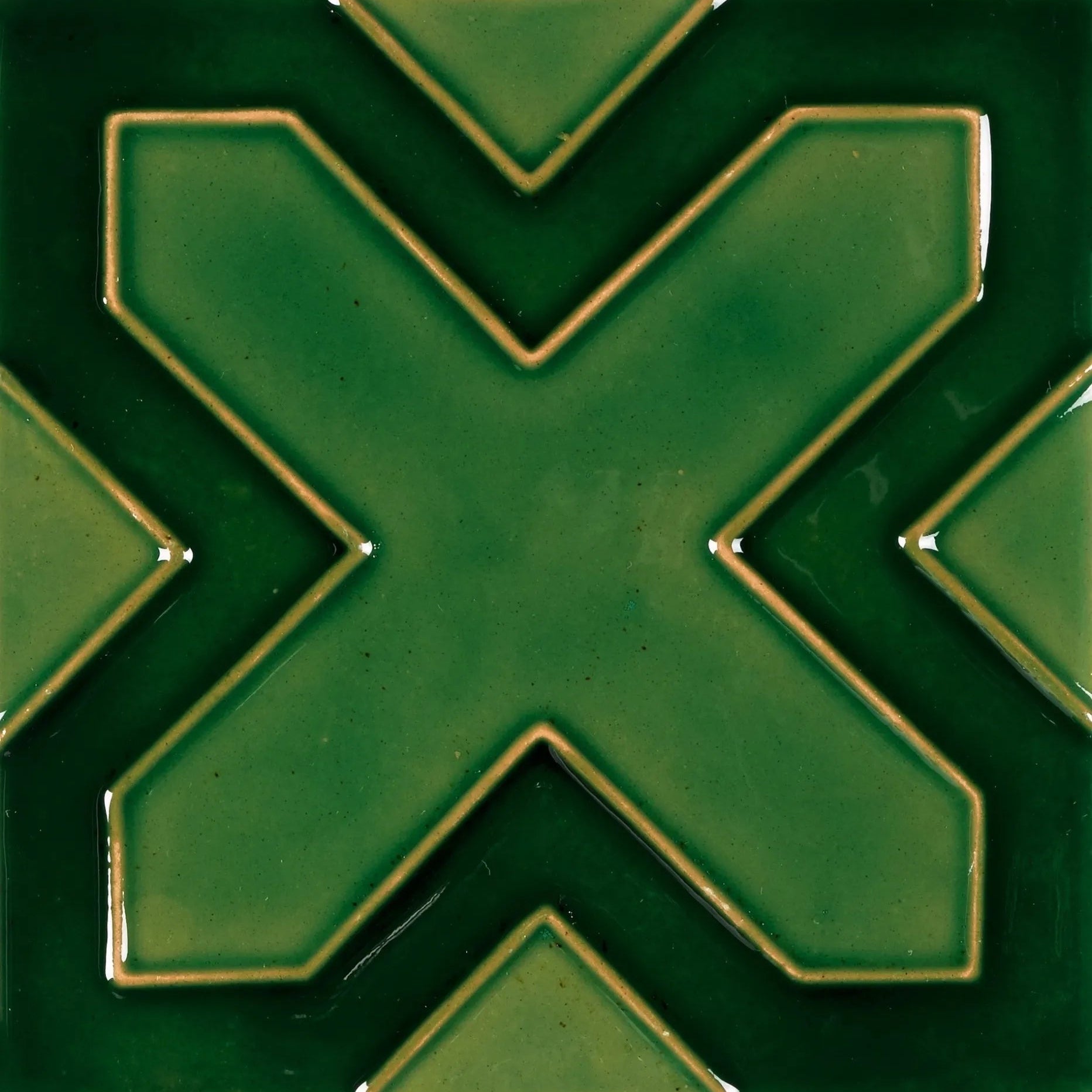 Traditional Hand-Painted Portuguese Azulejos Arestas Tile, Crystals Verde T5 Glossy, 14x14 cm