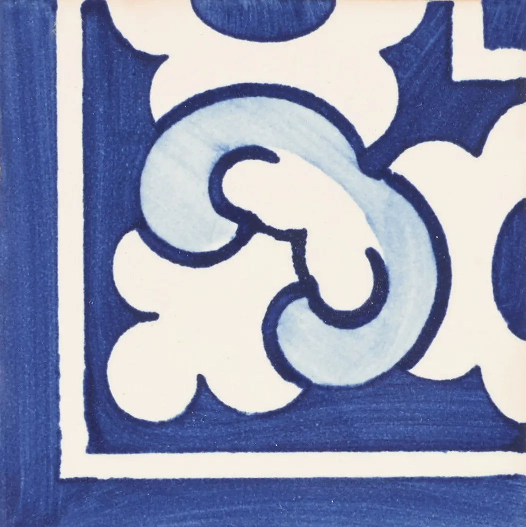 Traditional Hand-Painted Portuguese Border Tile, Blue & White Glossy, 7x7 cm