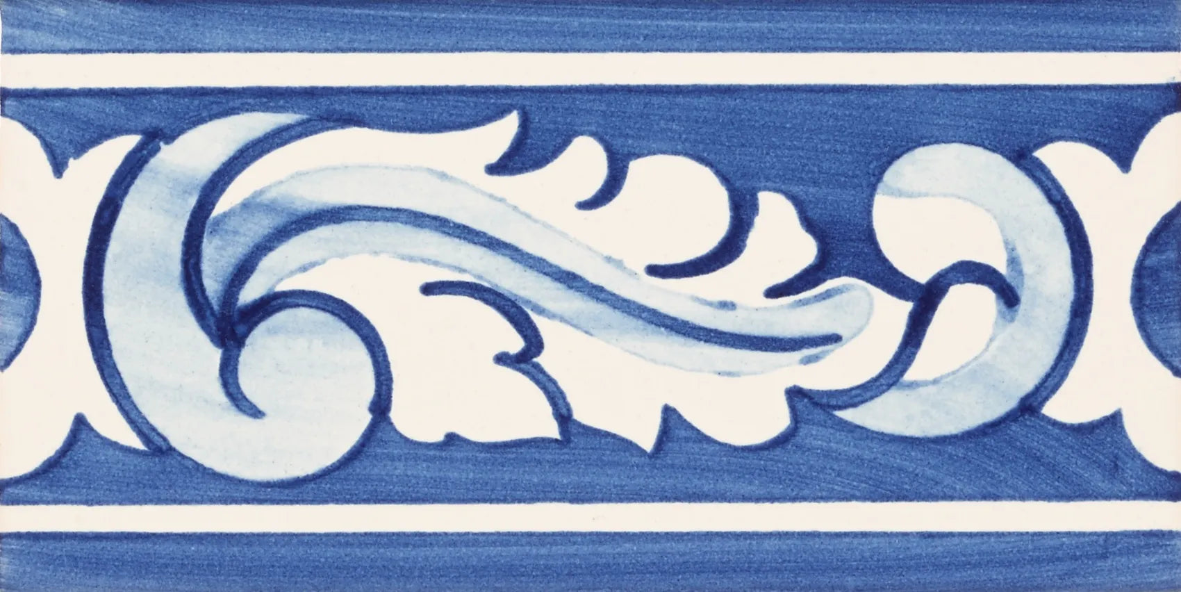 Traditional Hand-Painted Portuguese Border Tile, Blue & White One Glossy, 7x14 cm