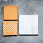 The collection includes two complementary designs: a classic plain tile and a matching tile detailed with delicate diagonal lines running across the surface. The linear pattern adds texture and movement while maintaining the same earthy terracotta look, allowing the two styles to be mixed or used on their own for a cohesive, layered effect.