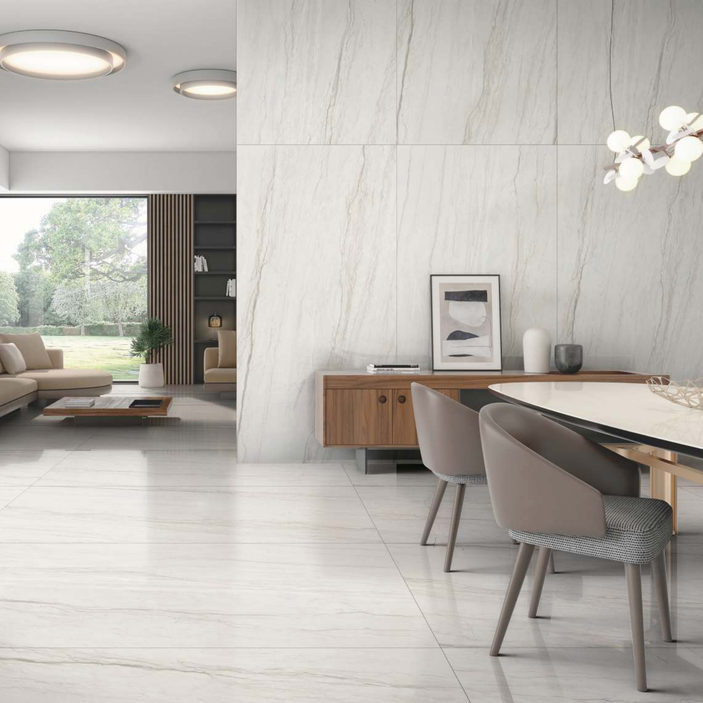 Santorini Big Slab Porcelain Tile: Exquisite and sophisticated, featuring a Santorini marble effect that adds a touch of luxury and elegance to any space.
