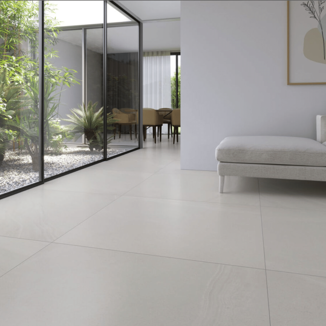 Matt Finish: Boasts a matt finish that enhances the natural look of the stone effect while providing a non-slip surface, suitable for various indoor areas.