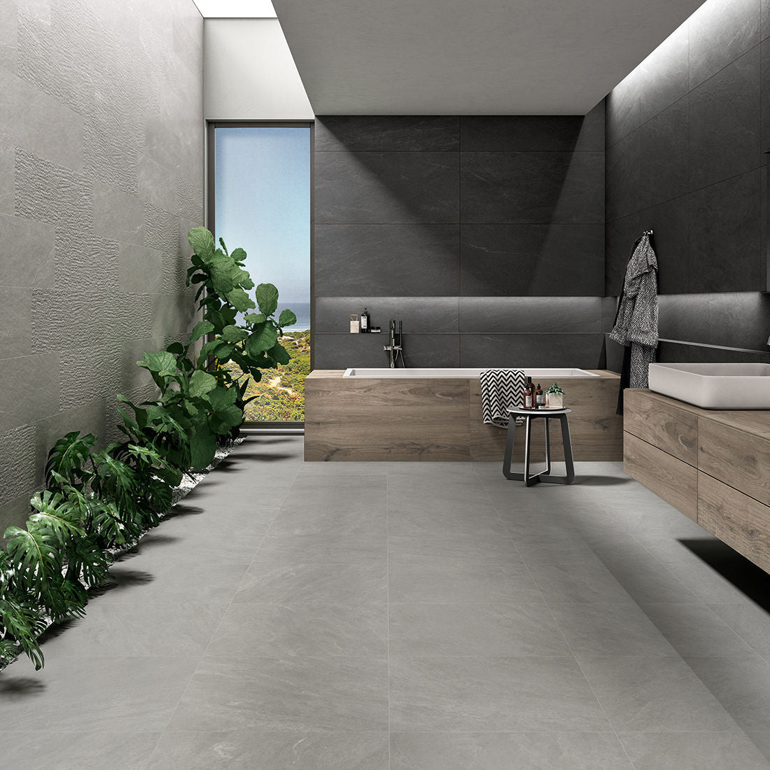 Norgestone Light Grey Porcelain Tile with Stone Effect, 60x120 cm, 20 mm
